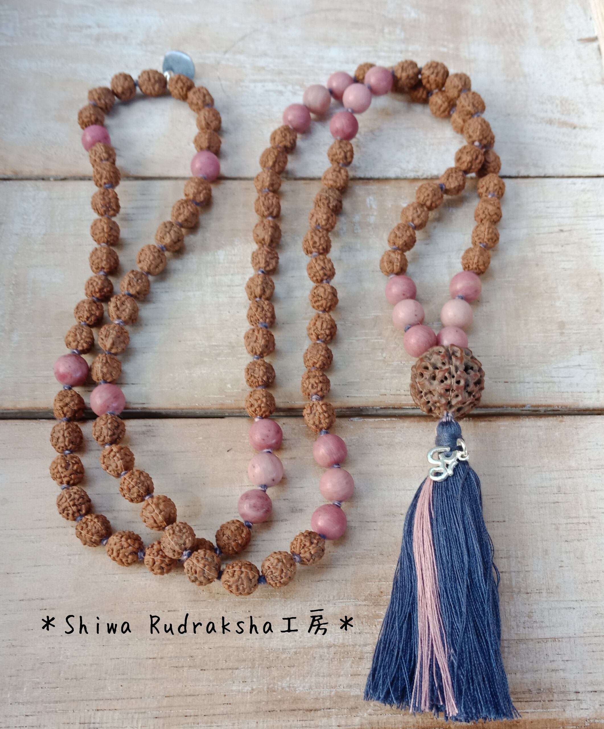 オール5面ルドラクシャと6面ルドラクシャ(カルティケヤ)をグルビーズにした108粒マーラーです。