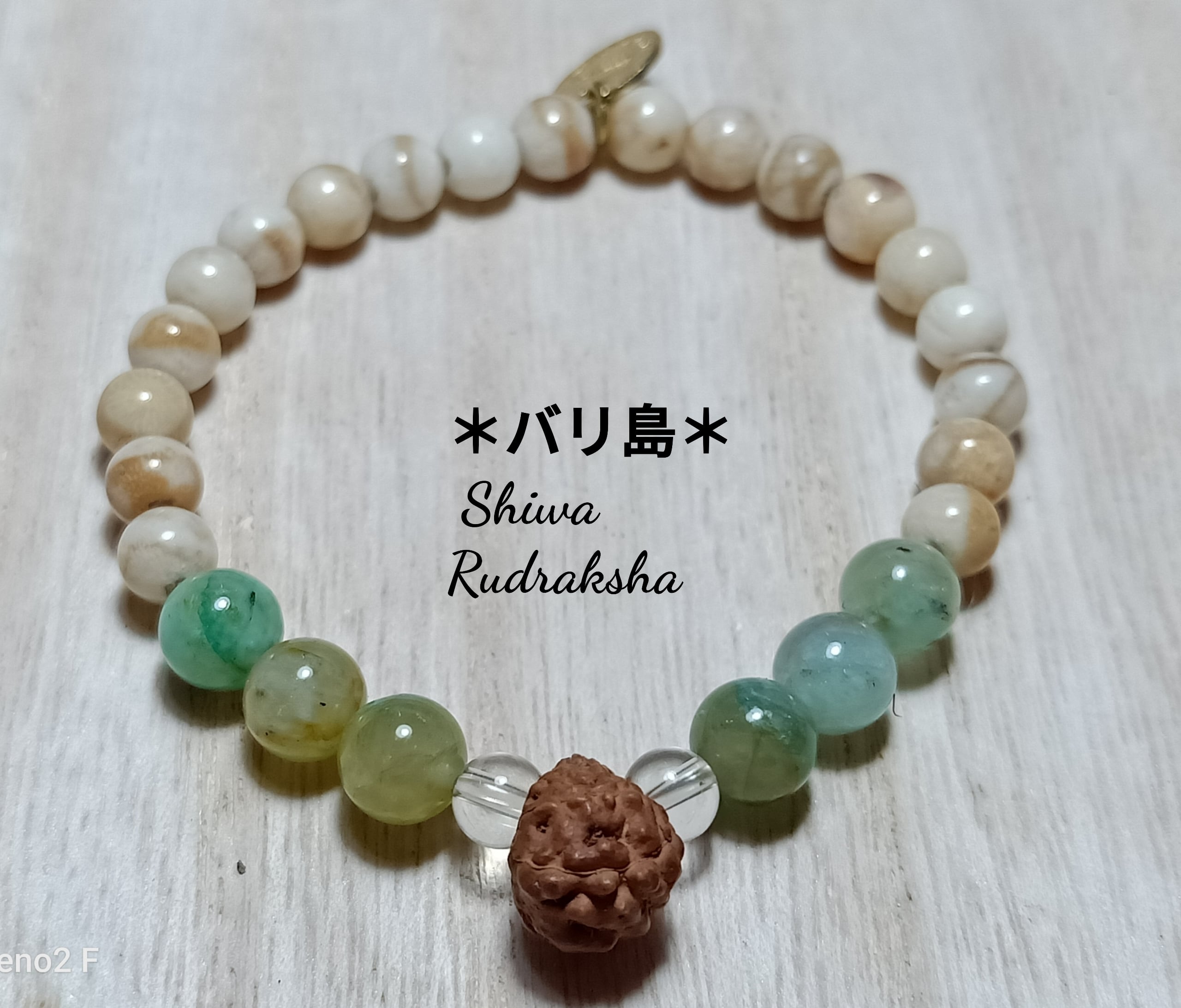 ★ルドラクシャ14面(約14mm)・ホワイトサンゴ(約6mm)・クリソコラシリカ(約8mm)・クリスタル(約6mm)