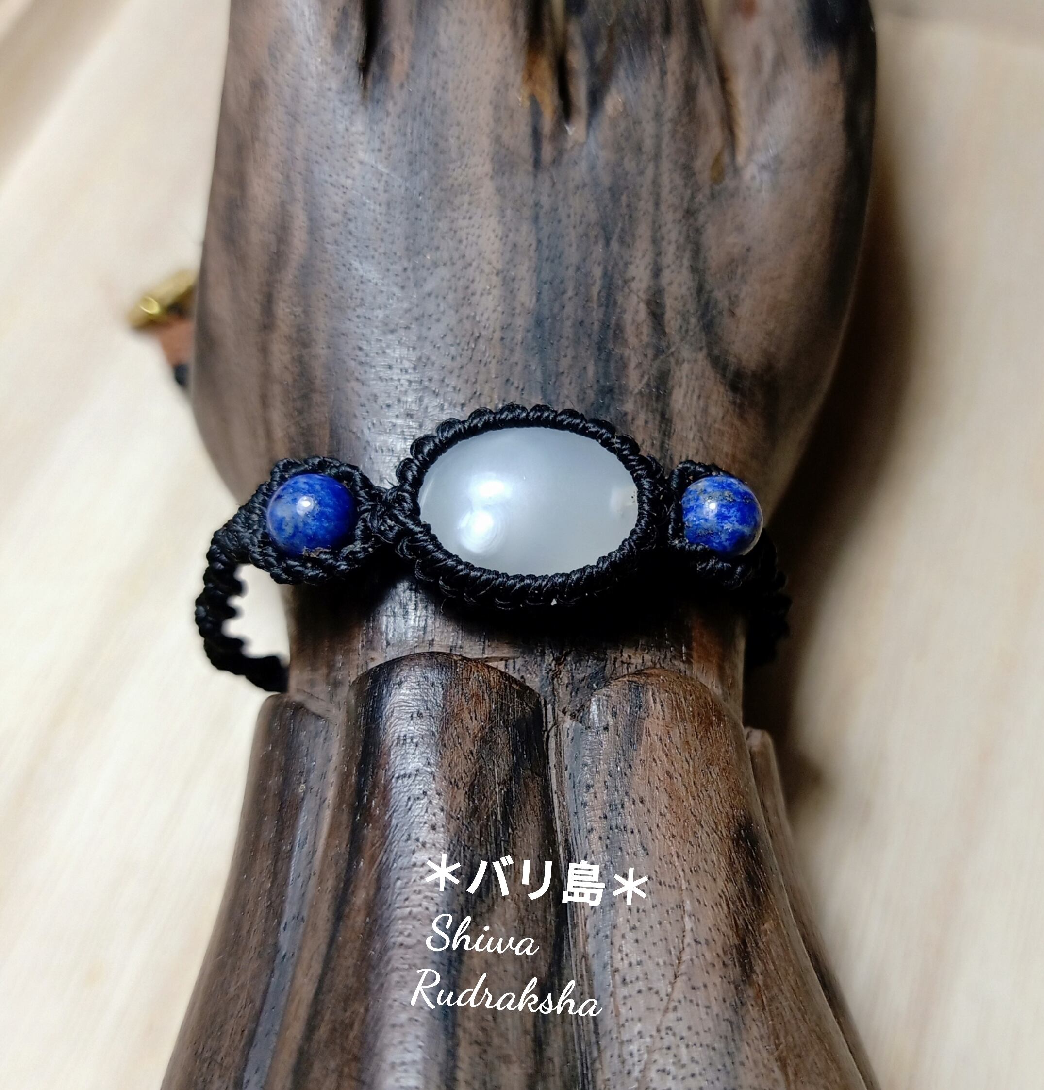 【ケオンカボション】シンプルなマクラメ編み★ラピスラズリ★ブラック