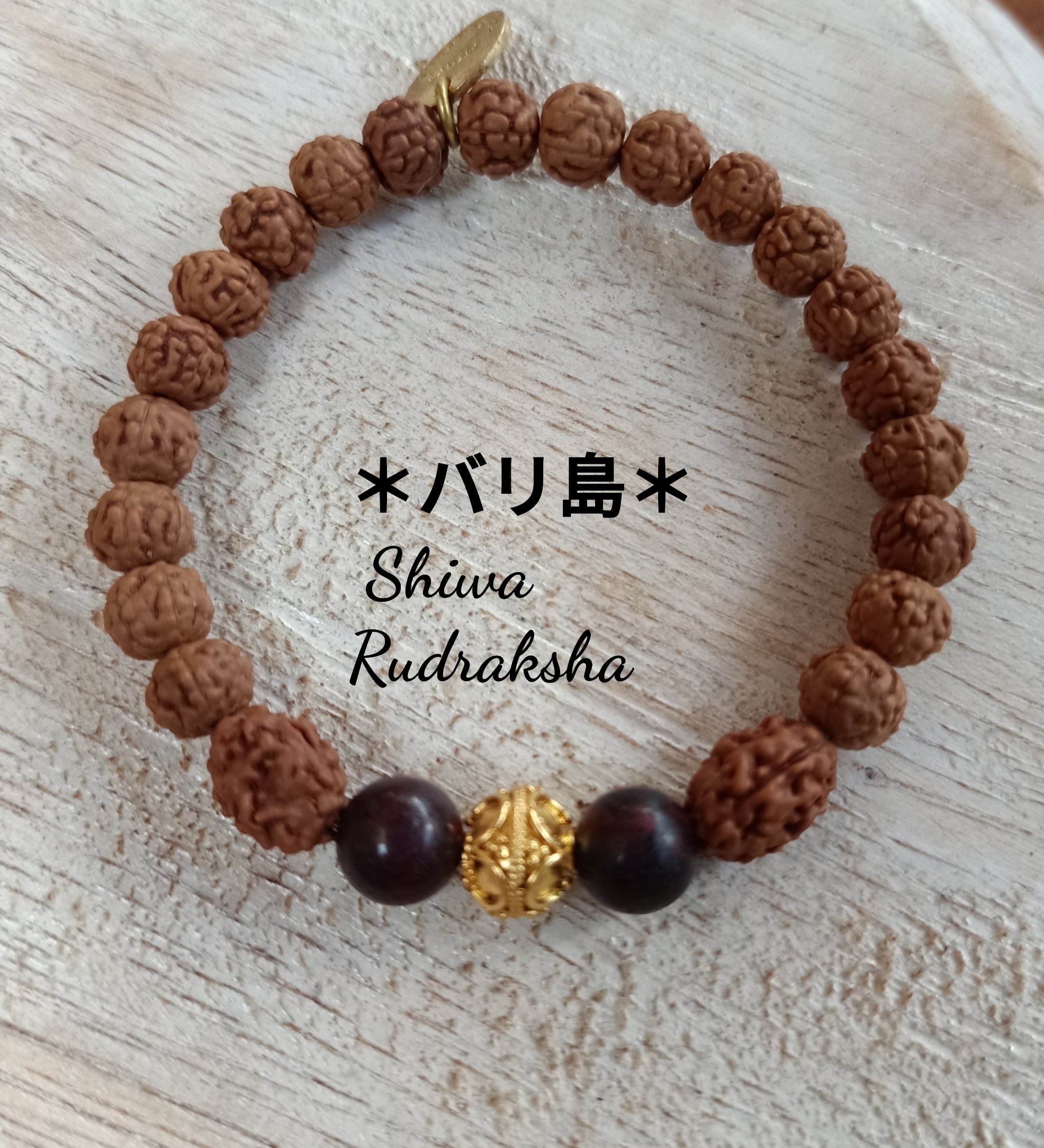 ★ルドラクシャ5面(約7mm)・ルドラクシャ3面(約12mm)・ブラッドストーン(約8mm)・ゴールドボールビーズ(約8mm)
