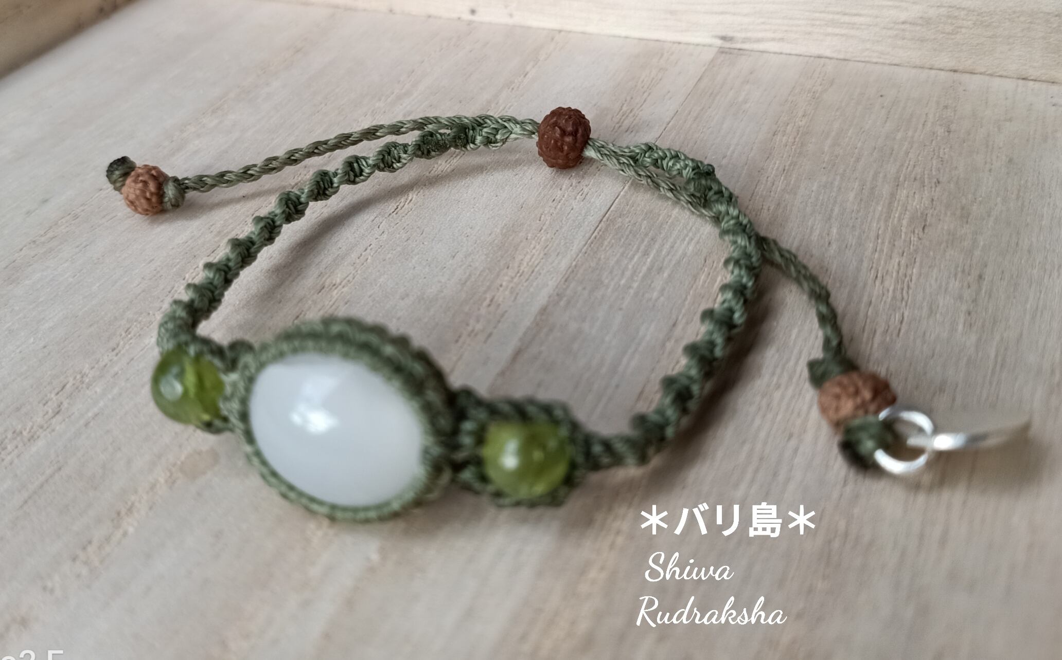 【入魂儀式済ケオン】シンプルなマクラメ編み★べリドット★ビスタチオ