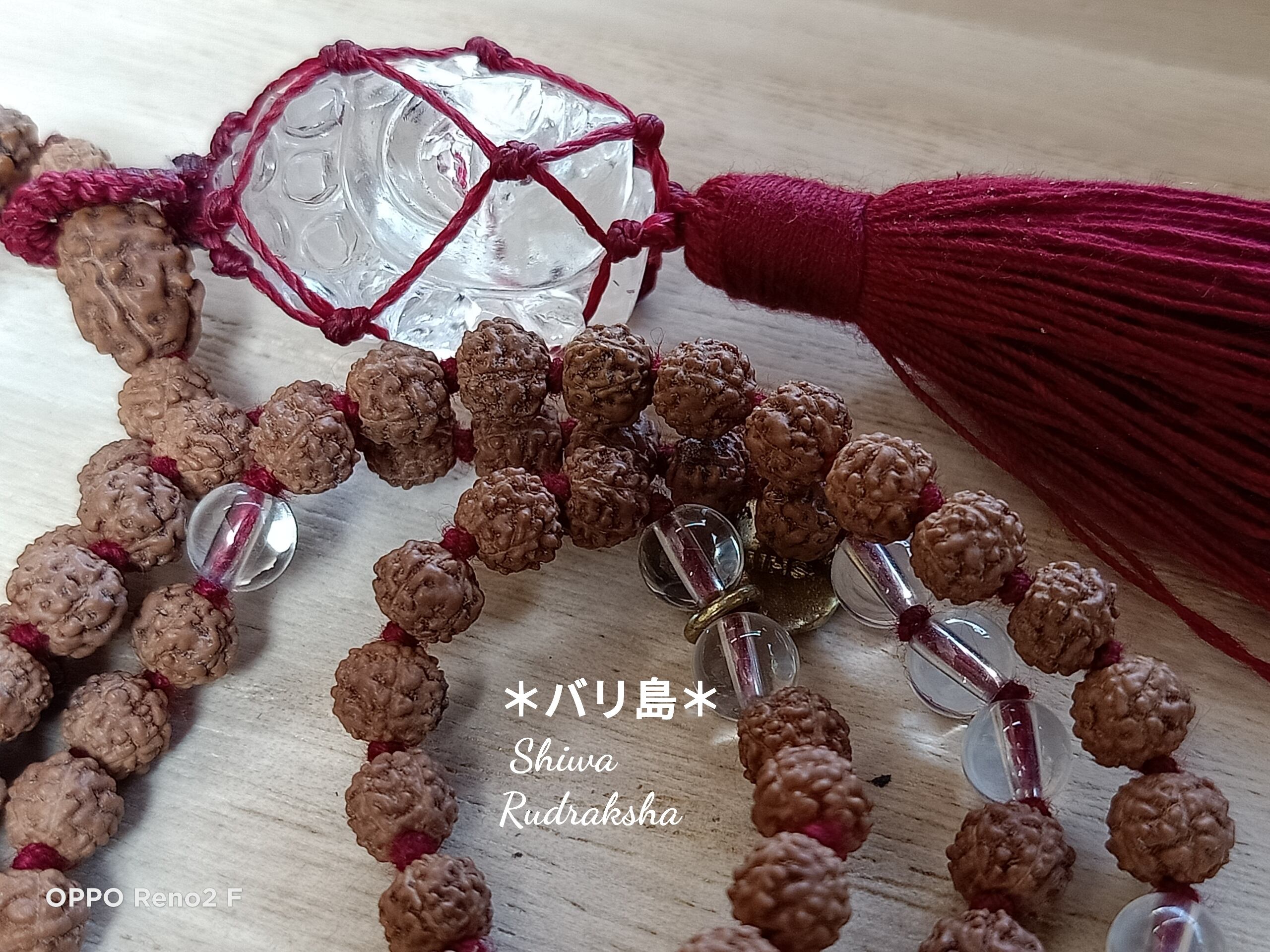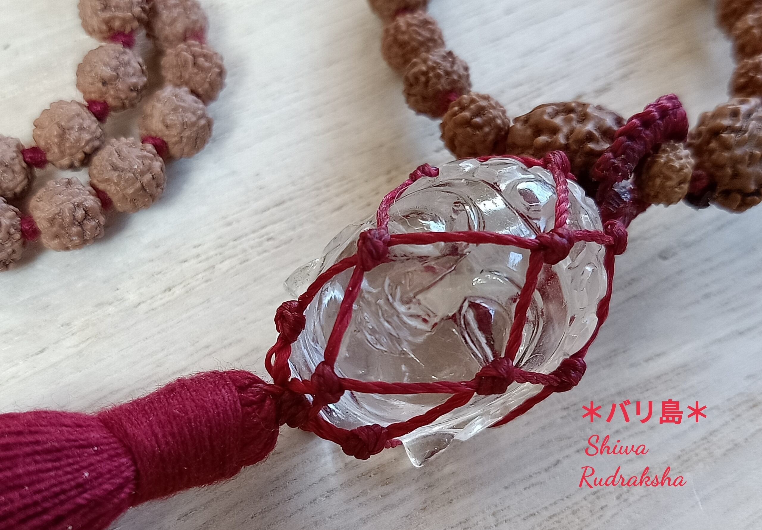 ★ルドラクシャ5面(約6,5mm)・ルドラクシャ3面(約11mm)・クリスタル(約6mm)・仏陀クリスタル(約縦29mm)
