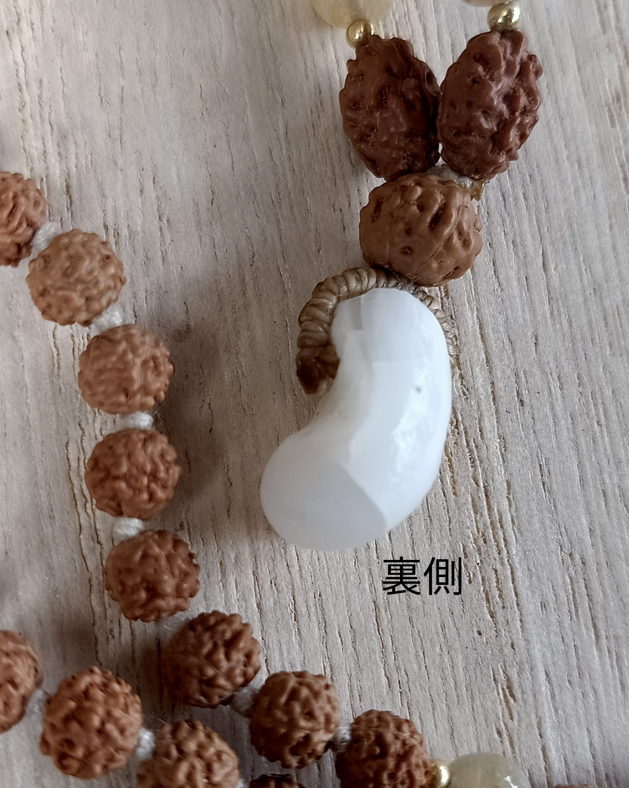 小ぶりの「ケオン」に合わせて、ルドラクシャも小粒にしています。