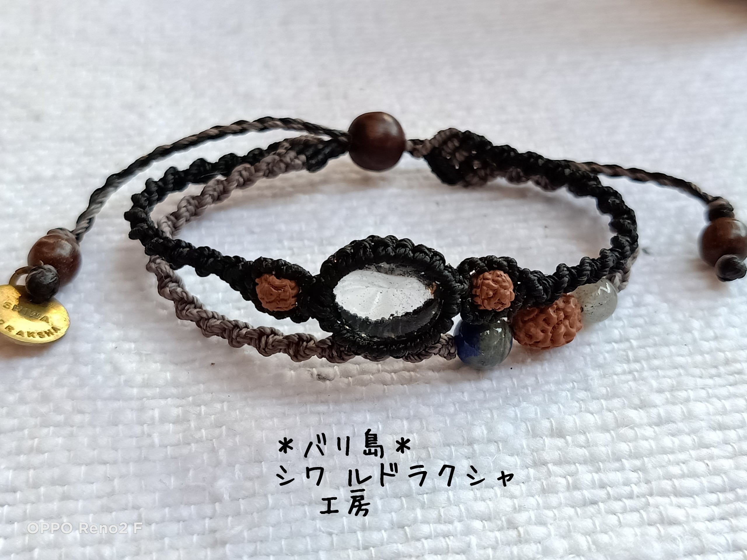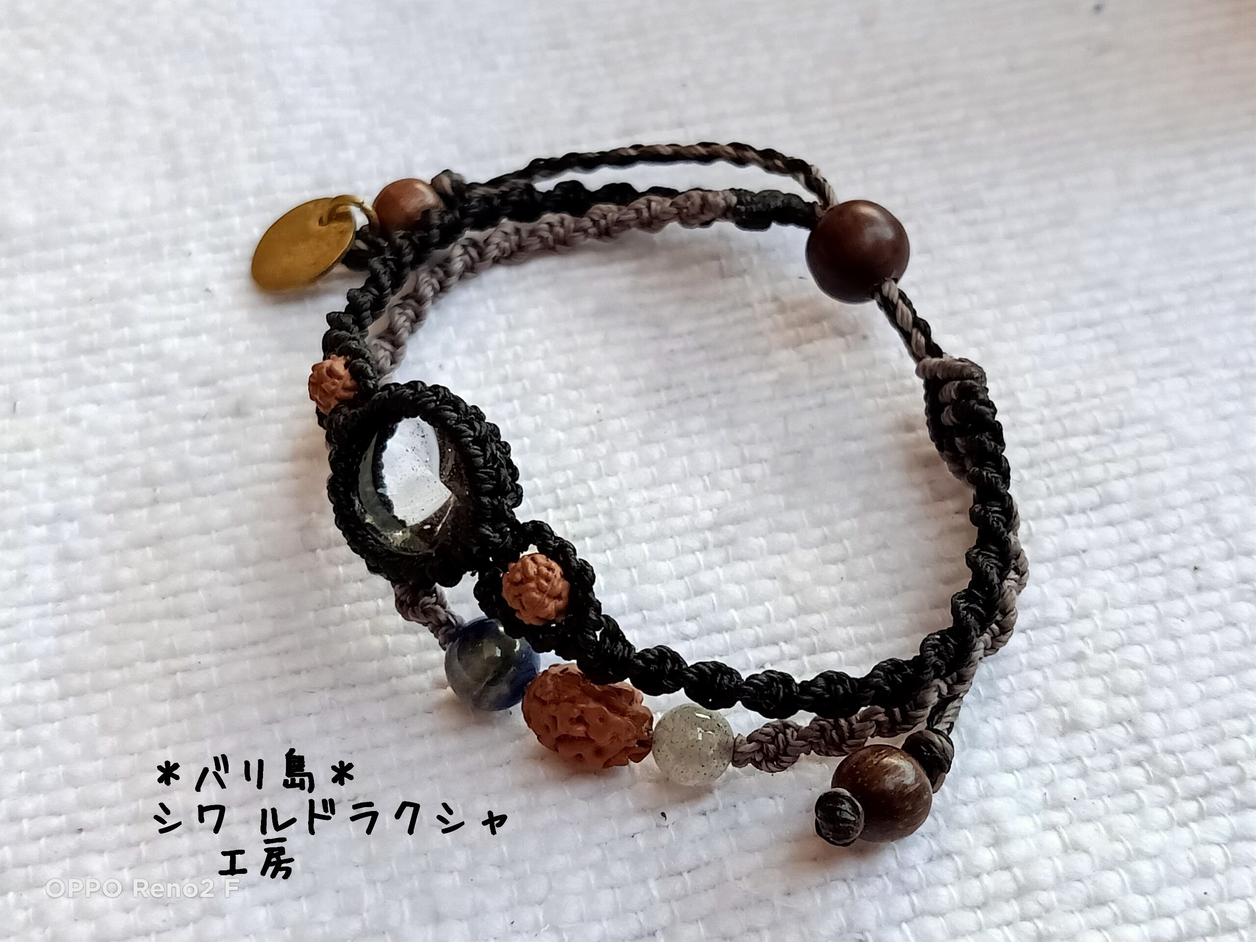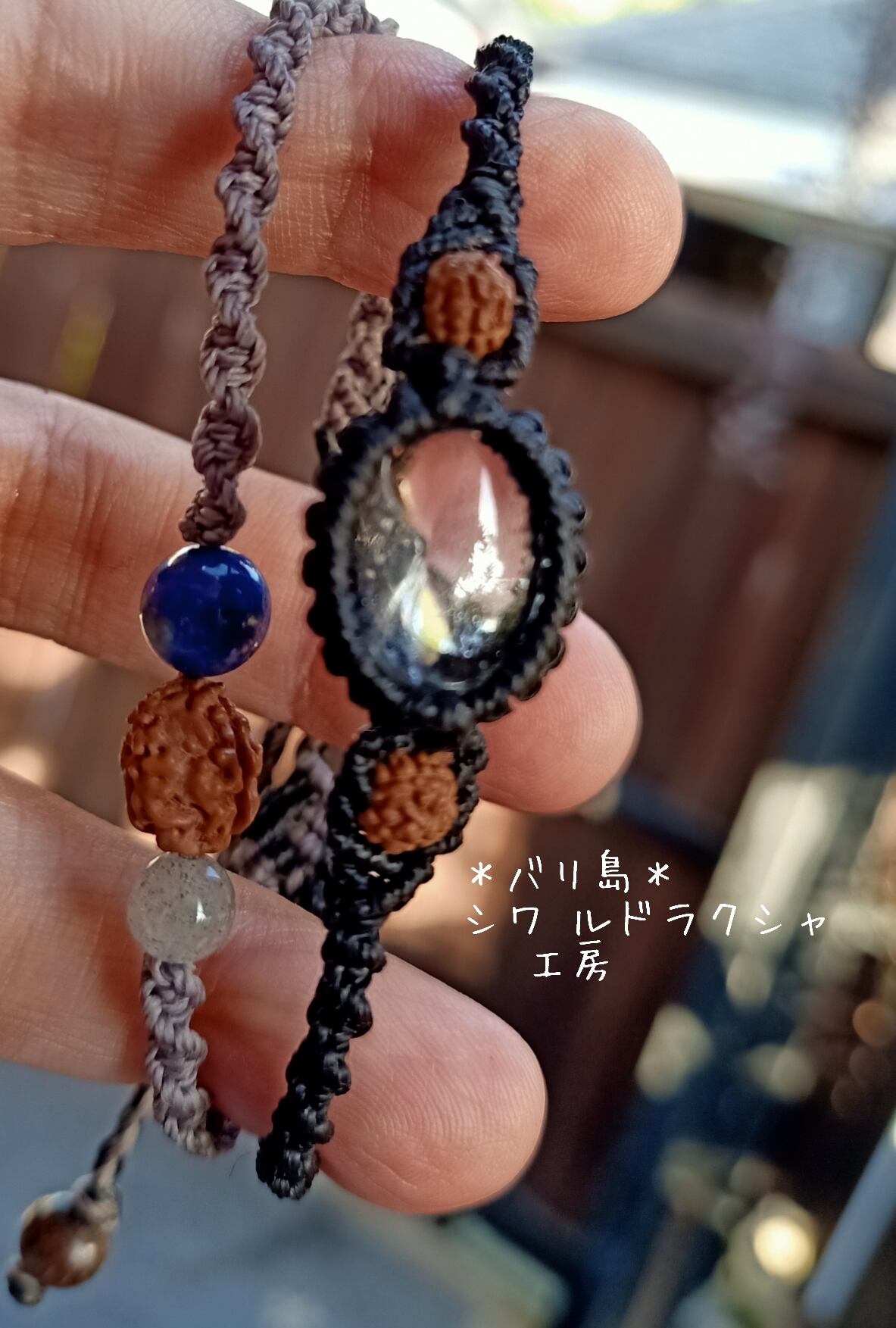 ★ルドラクシャ3面(縦約11mm)・ルドラクシャ5面(約6mm)・インドネシア産アメジスト(約17mm)・ラピスラズリ(約7mm)・ラブラドライト(約6mm)・ジャワ産ガハル(沈香)