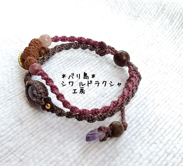 【インドネシア産アメジスト】サラスヴァティ女神★マクラメ2連ブレスレット