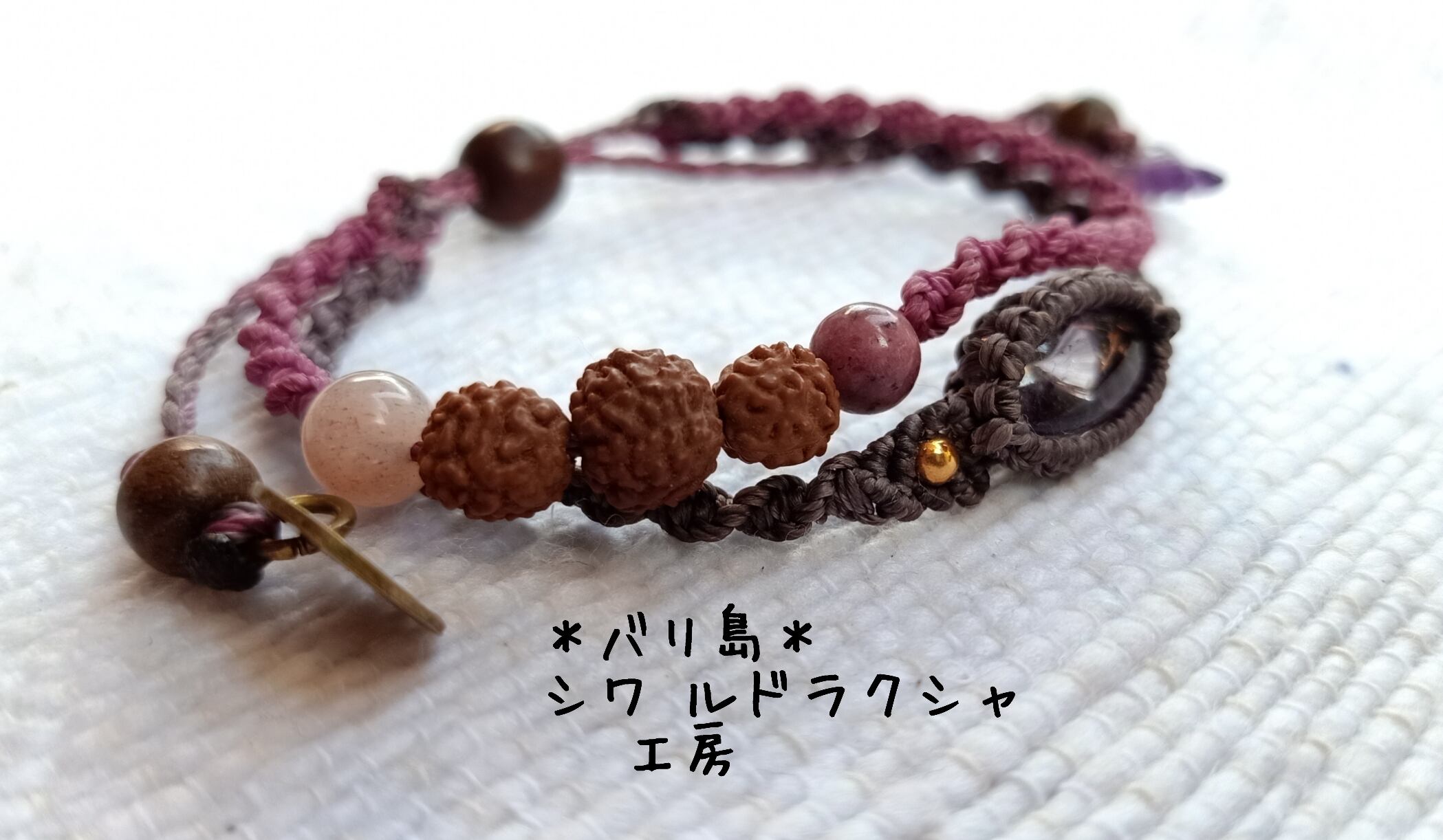 4面ルドラクシャ(ブラフマー)と6面ルドラクシャ(カルティケヤ)を組み入れたマクラメの2連ブレスレットです。