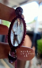 インドネシア・カリマンタン産の天然石「ホワイトアメジスト」と高品質ルドラクシャ「キスワント」のオール5面の紐ブレスレットです。