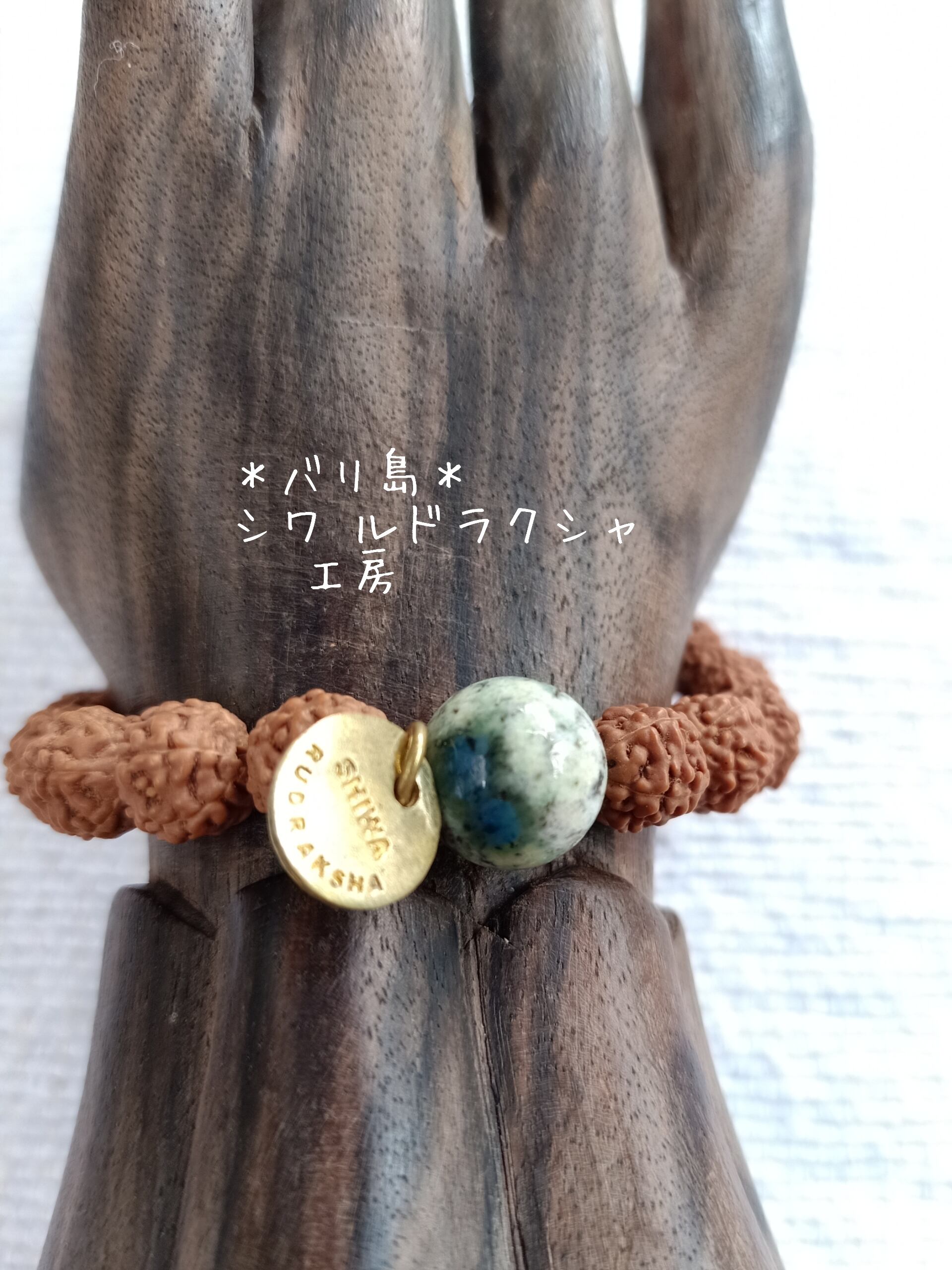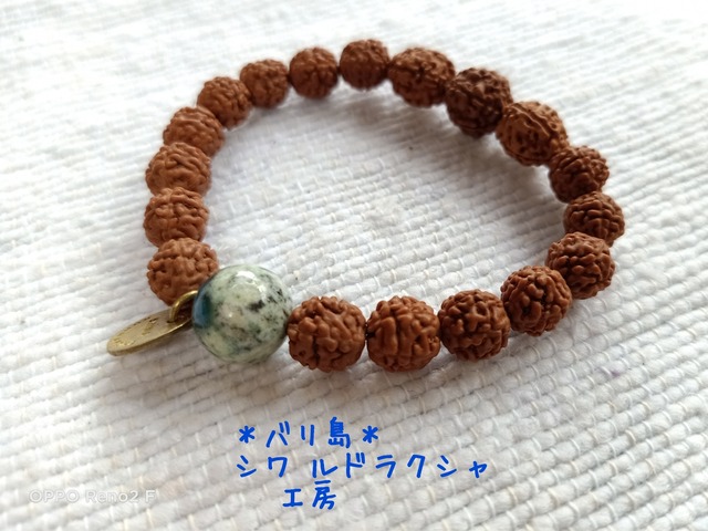 「学問や芸術の神様」をあらわす4面&6面ルドラクシャ「サラスヴァティ女神」をストーンの対面に入れたブレスレットです。