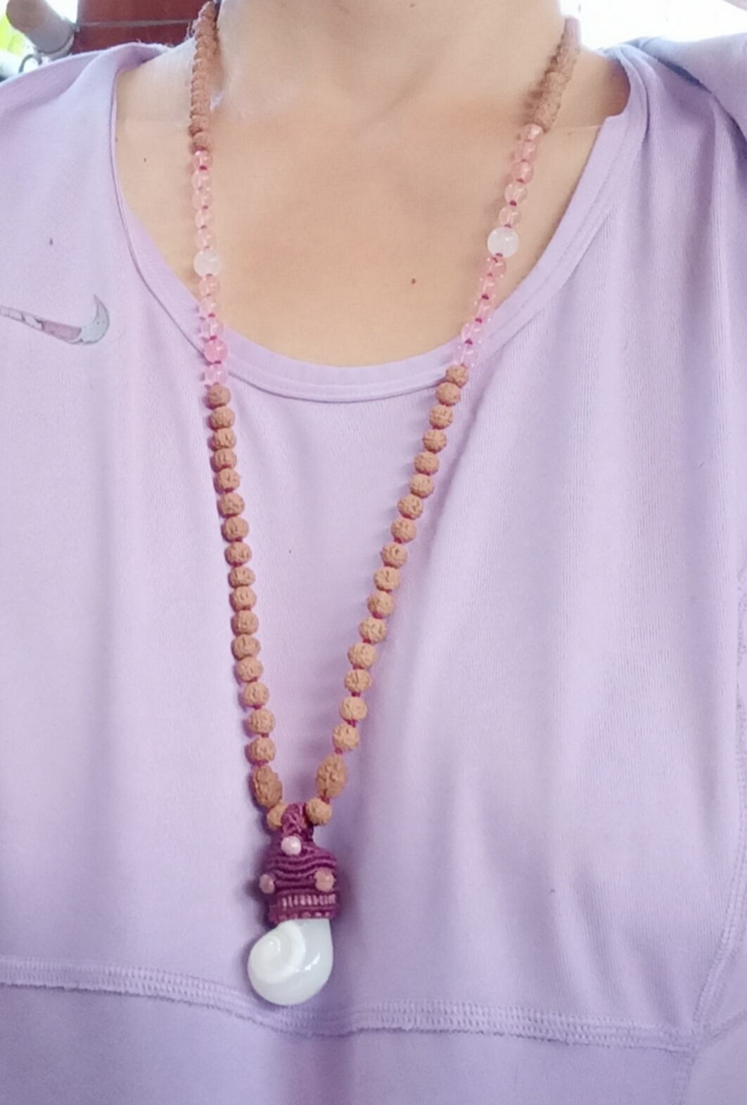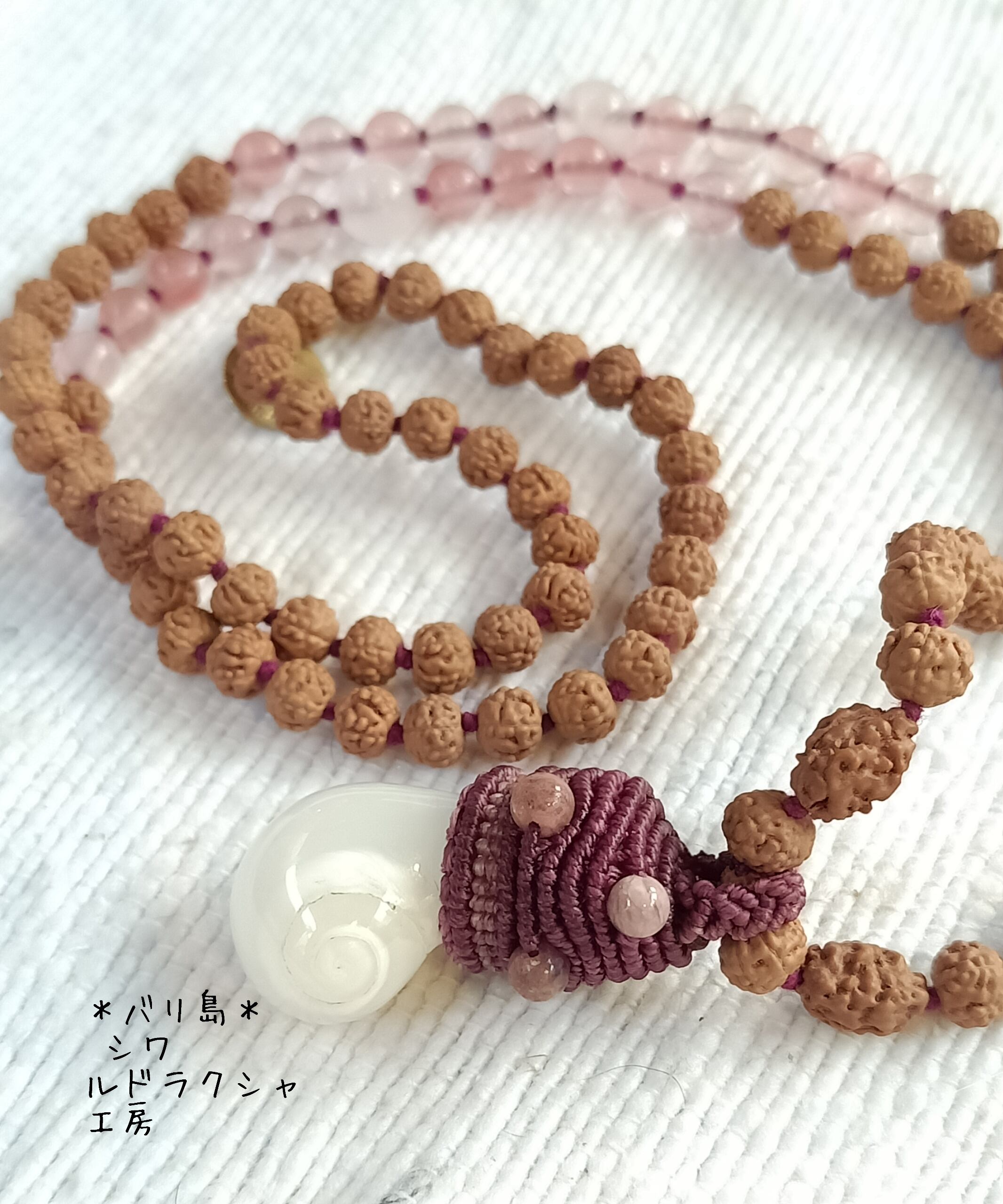 ★キスワントルドラクシャ5面(約6㎜)・ルドラクシャ2面(縦約11mm)・ルドラクシャ7面(約6mm)・チェリークォーツ(約6mm)・ローズクウォーツ(約8mm)・トルマリン(約4,5mm)・ケオン(縦約34mm:キレイです。)