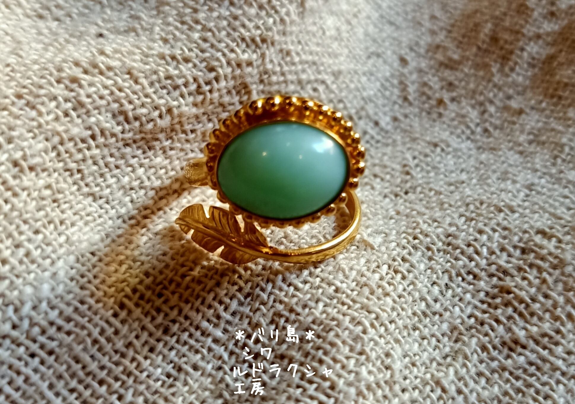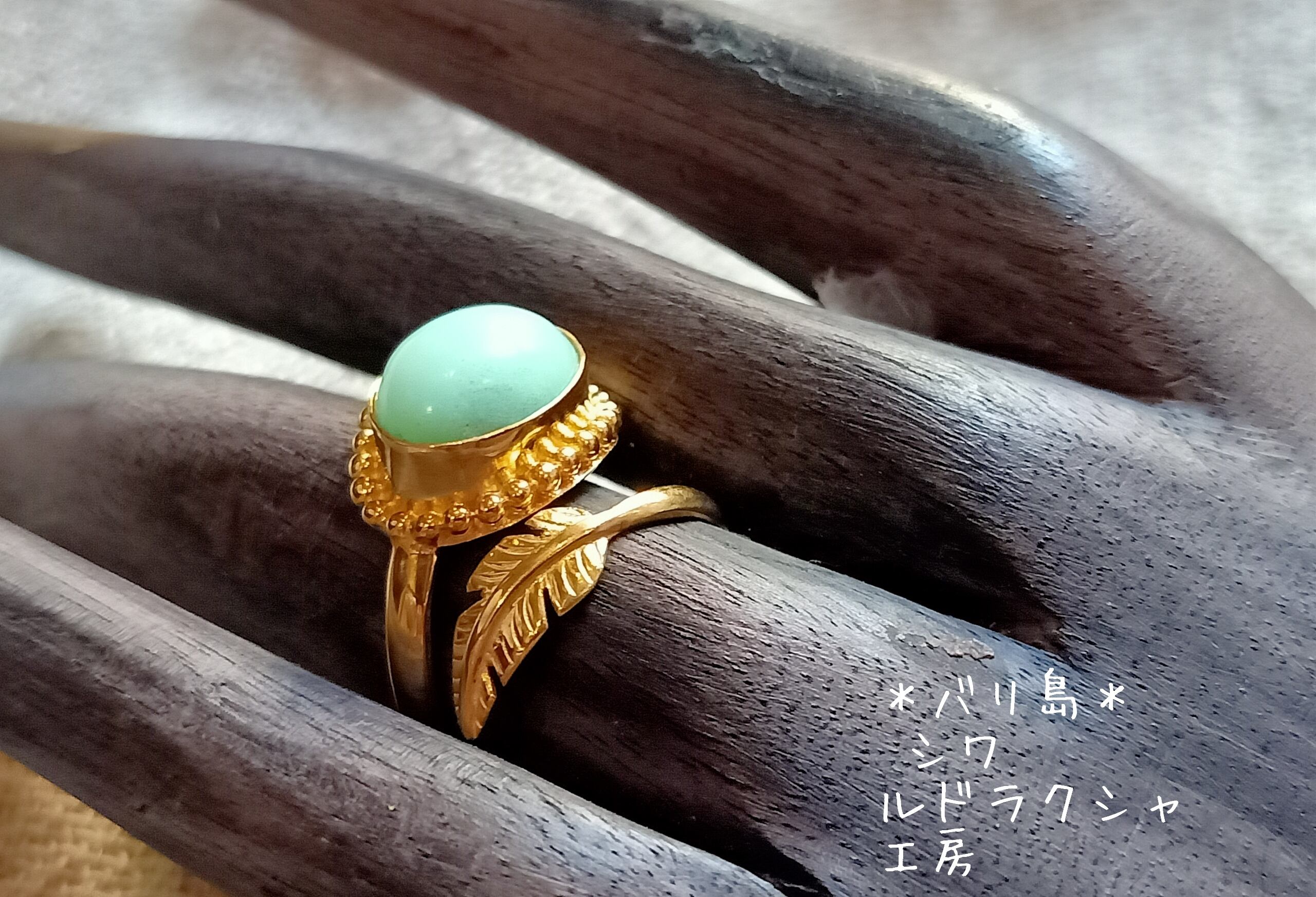 【特注デザイン】クリソプレーズのリング★24Kゴールドコーティング925シルバー