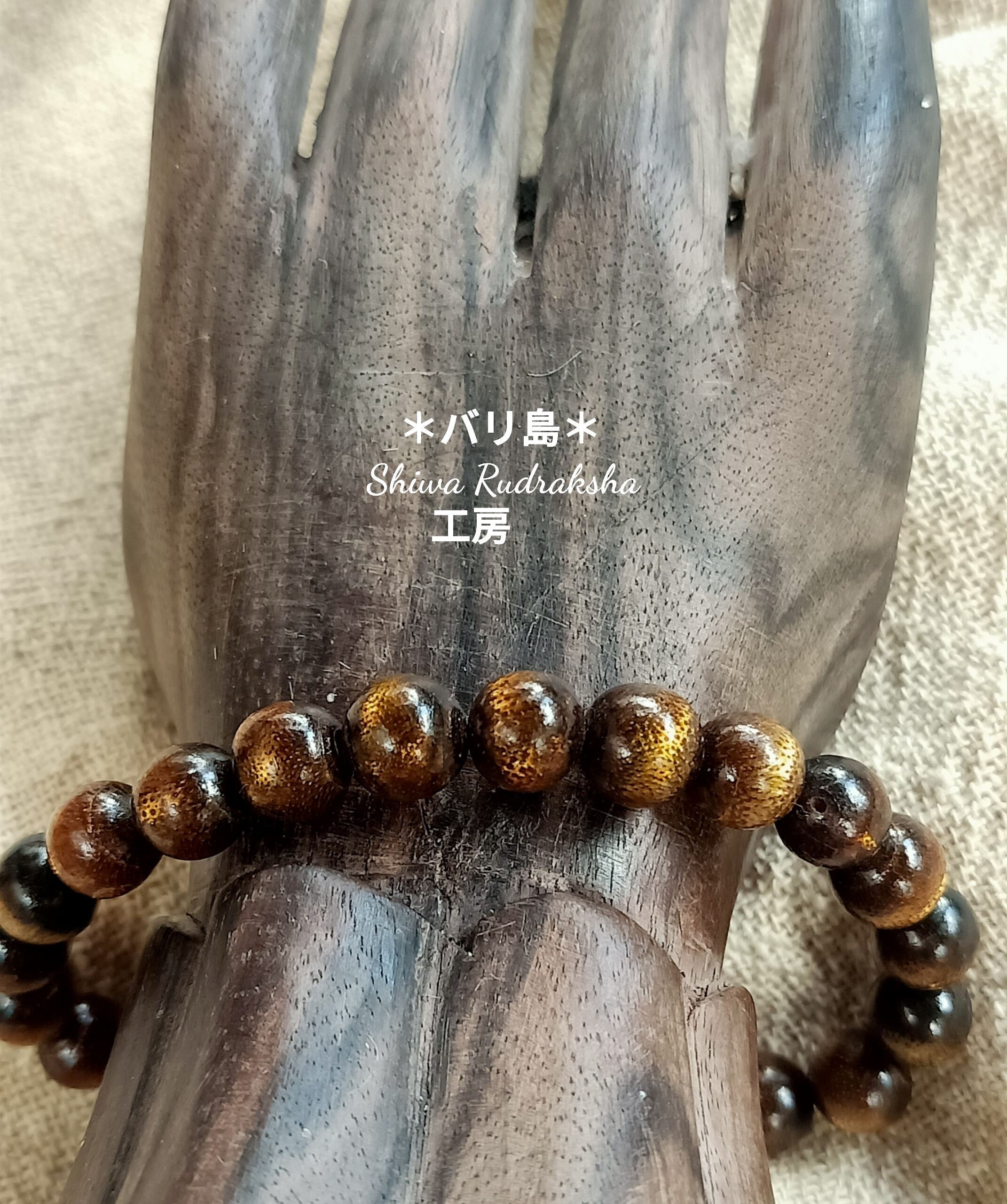 ★内円:約15cm(ゴムが緩めなので2cm位伸びます。こちらは小さくサイズ直しはできます。大きくする場合はルドラクシャ5面で調整します。)
