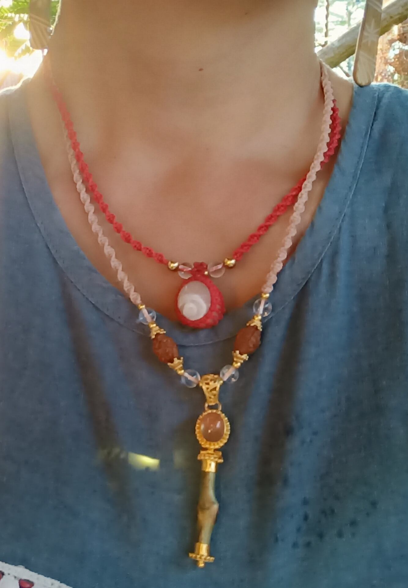 【三位一体】3面&ケオン&グリーンウリ★マクラメ紐2連ネックレス