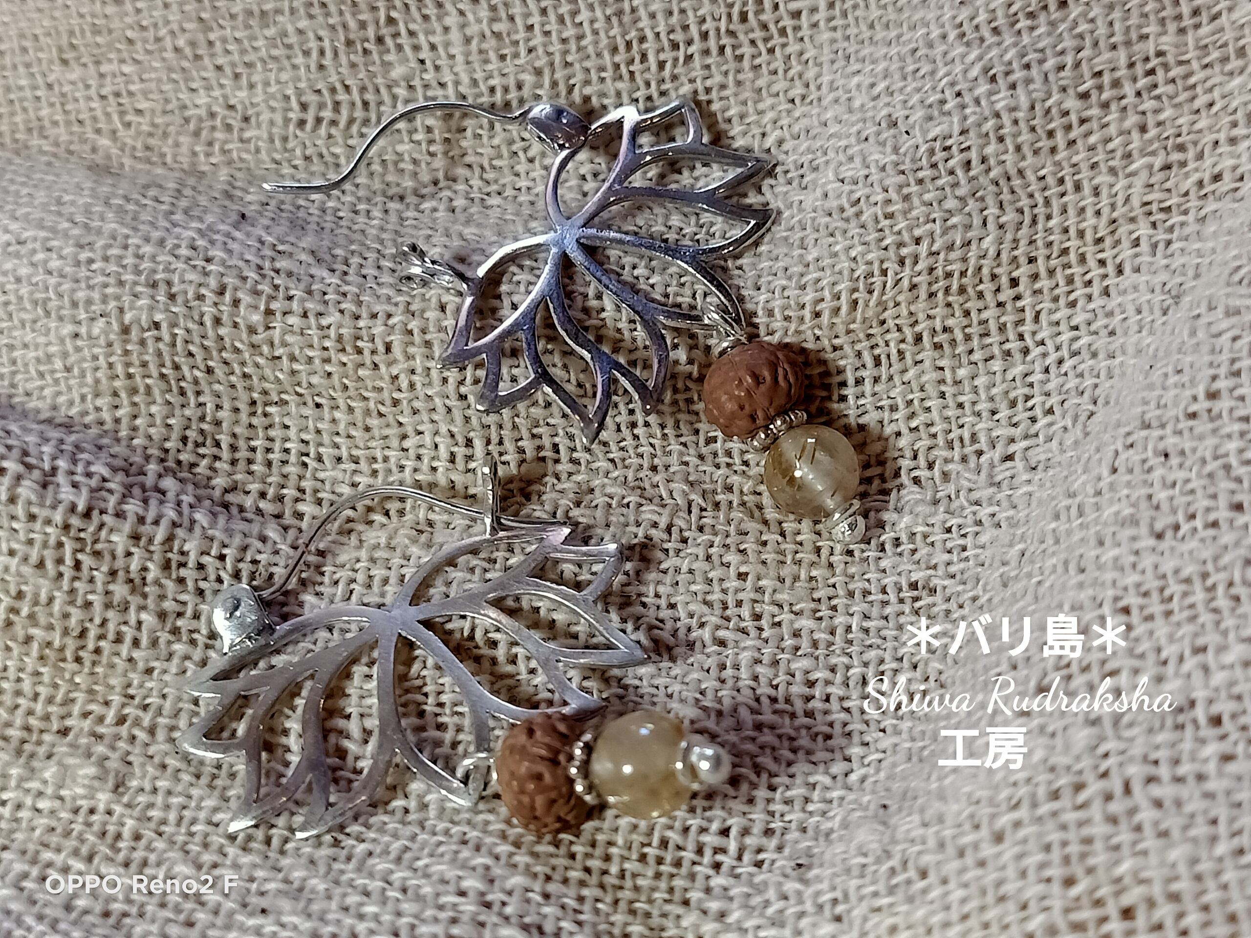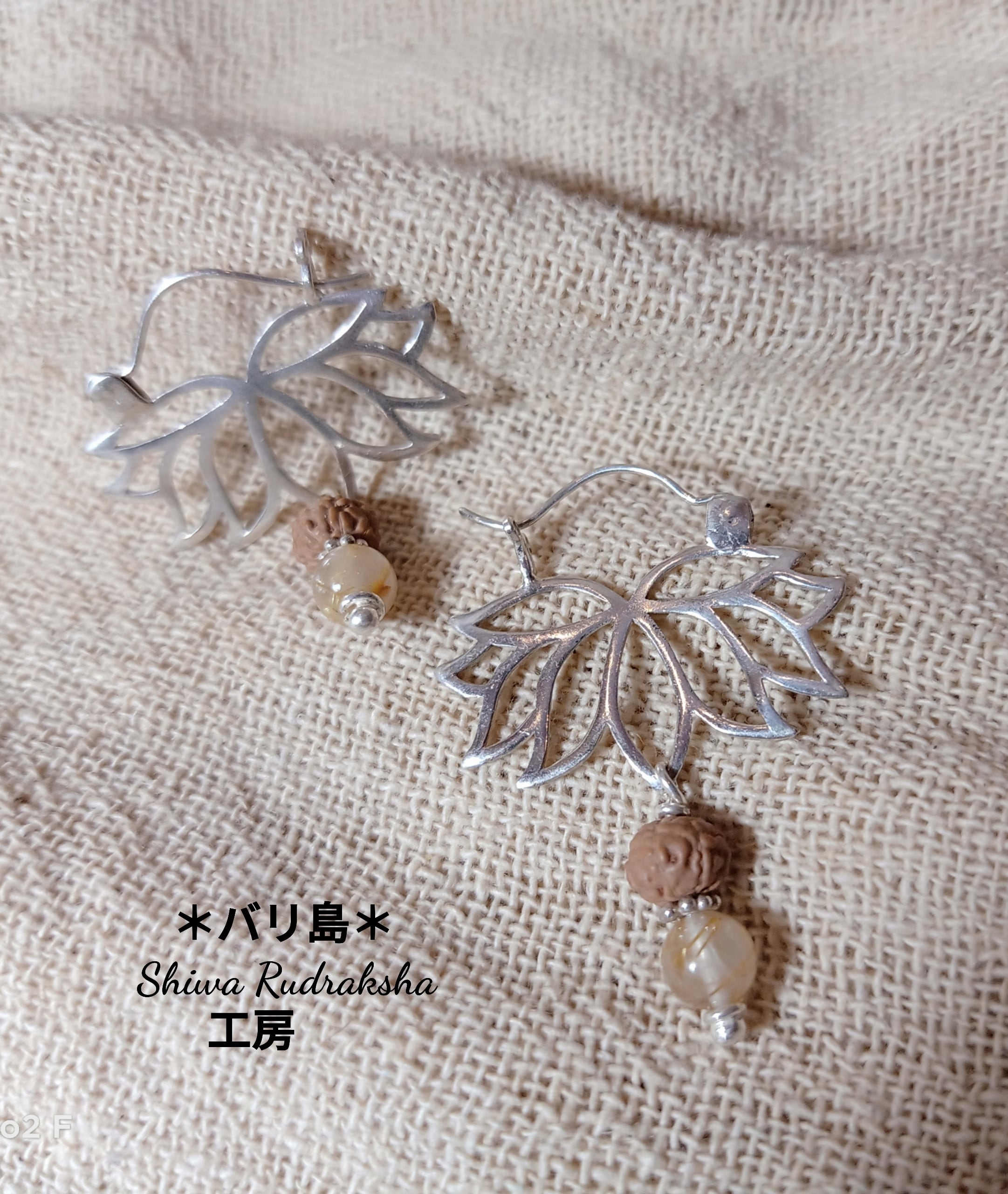 【ロータスピアス】ルドラクシャ7面&ルチルクウォーツ