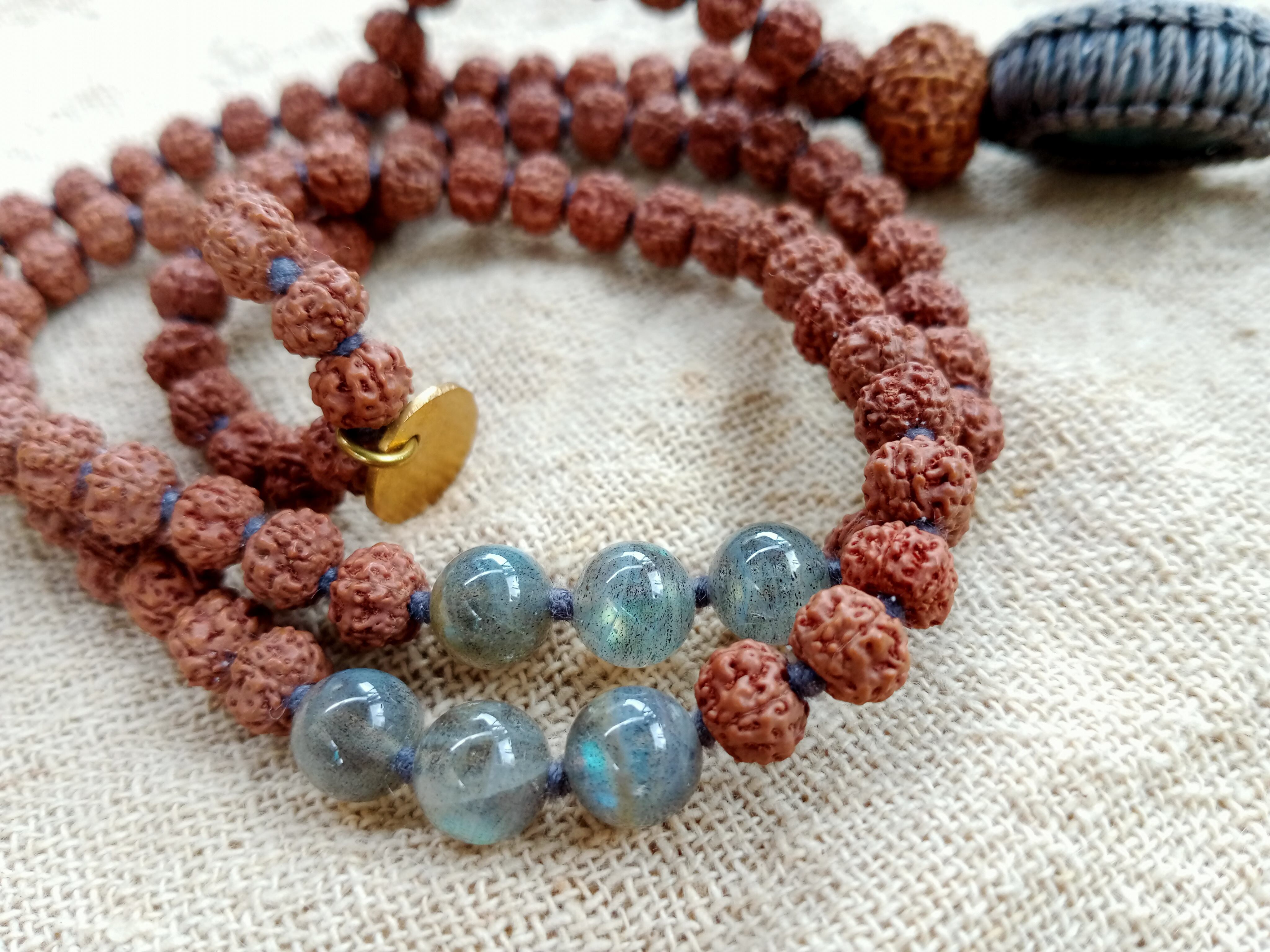 【インドネシア産アゲート】9面ドゥルガー&ラブラドライト★108粒マーラ-