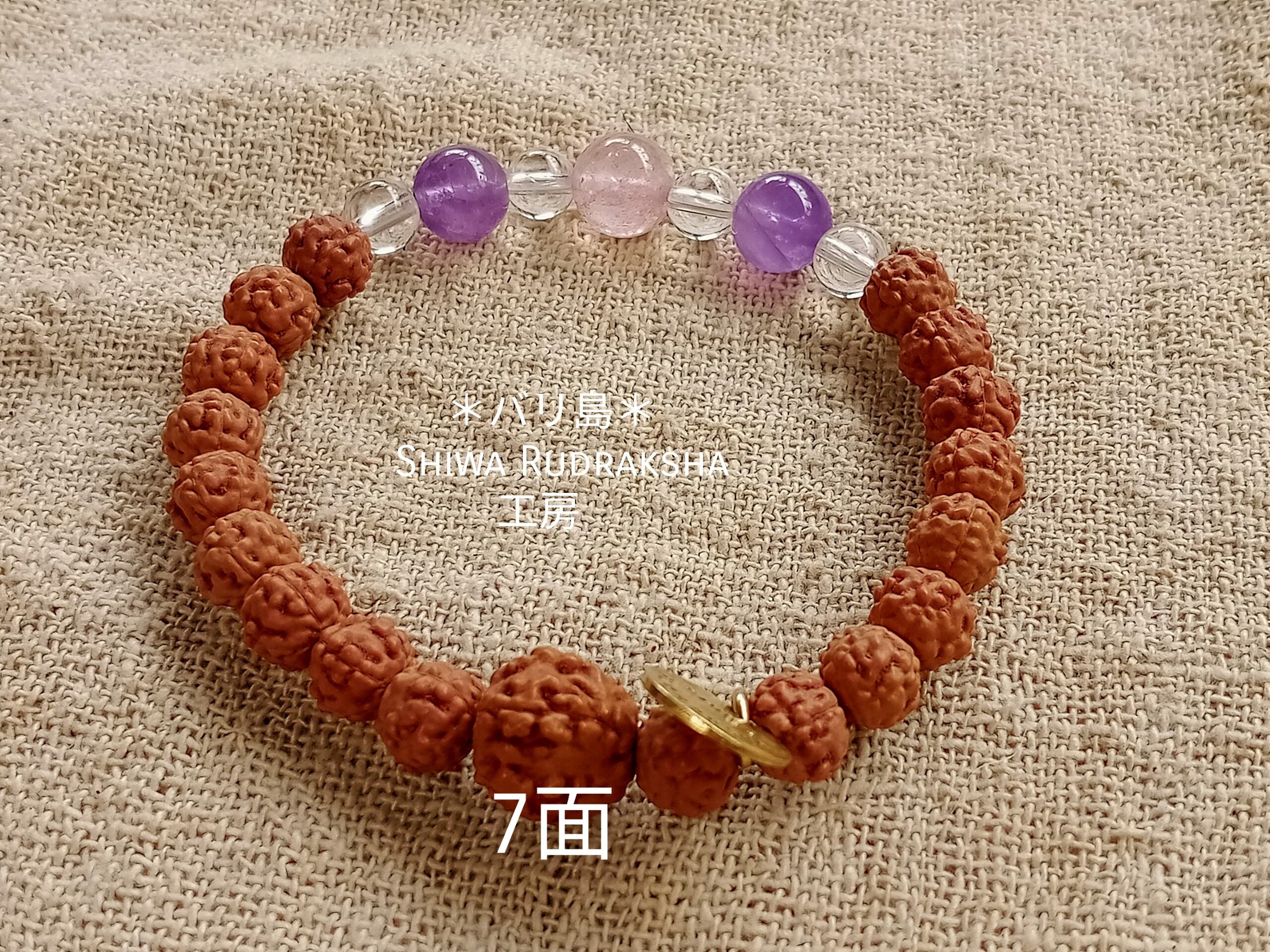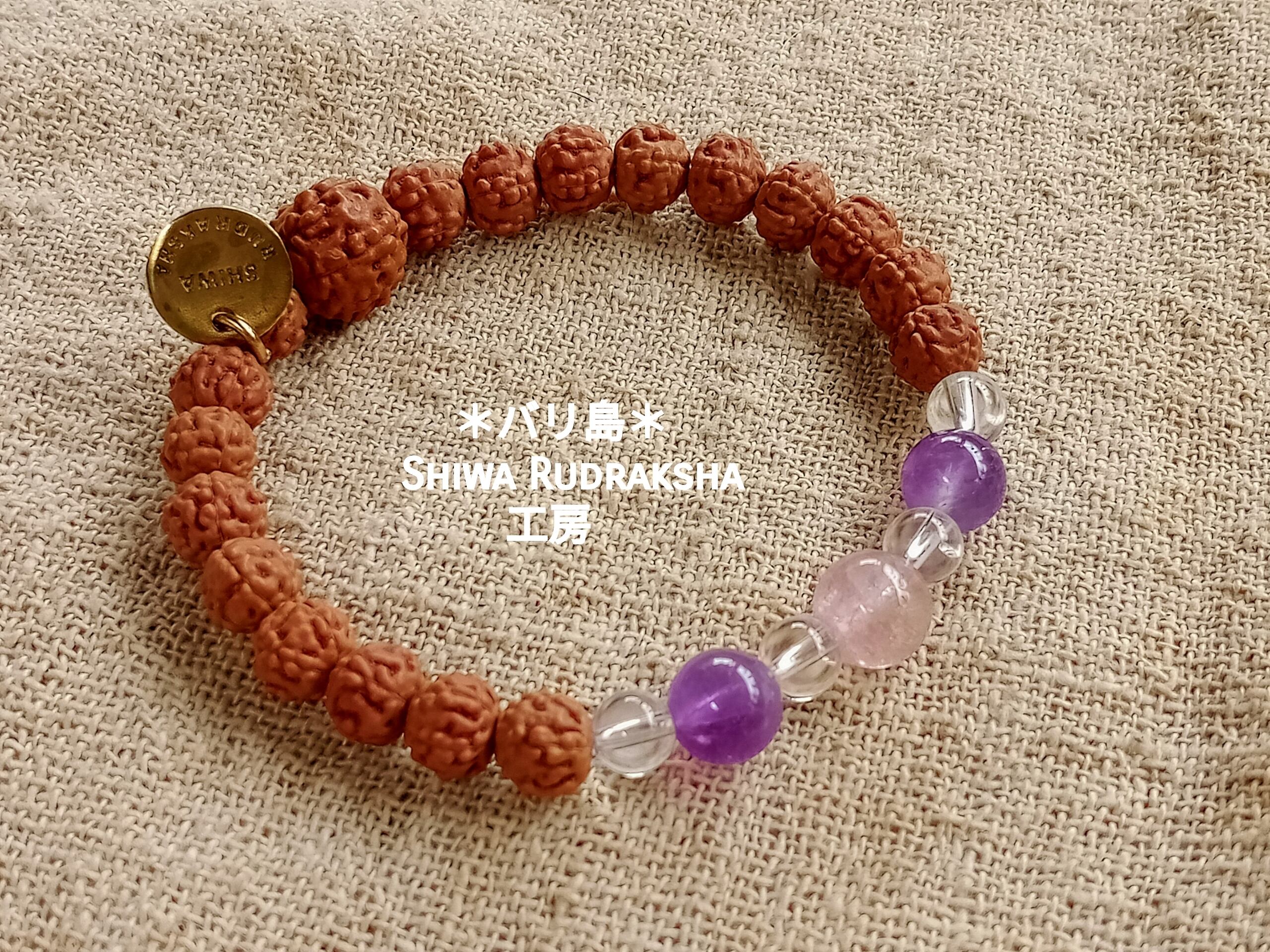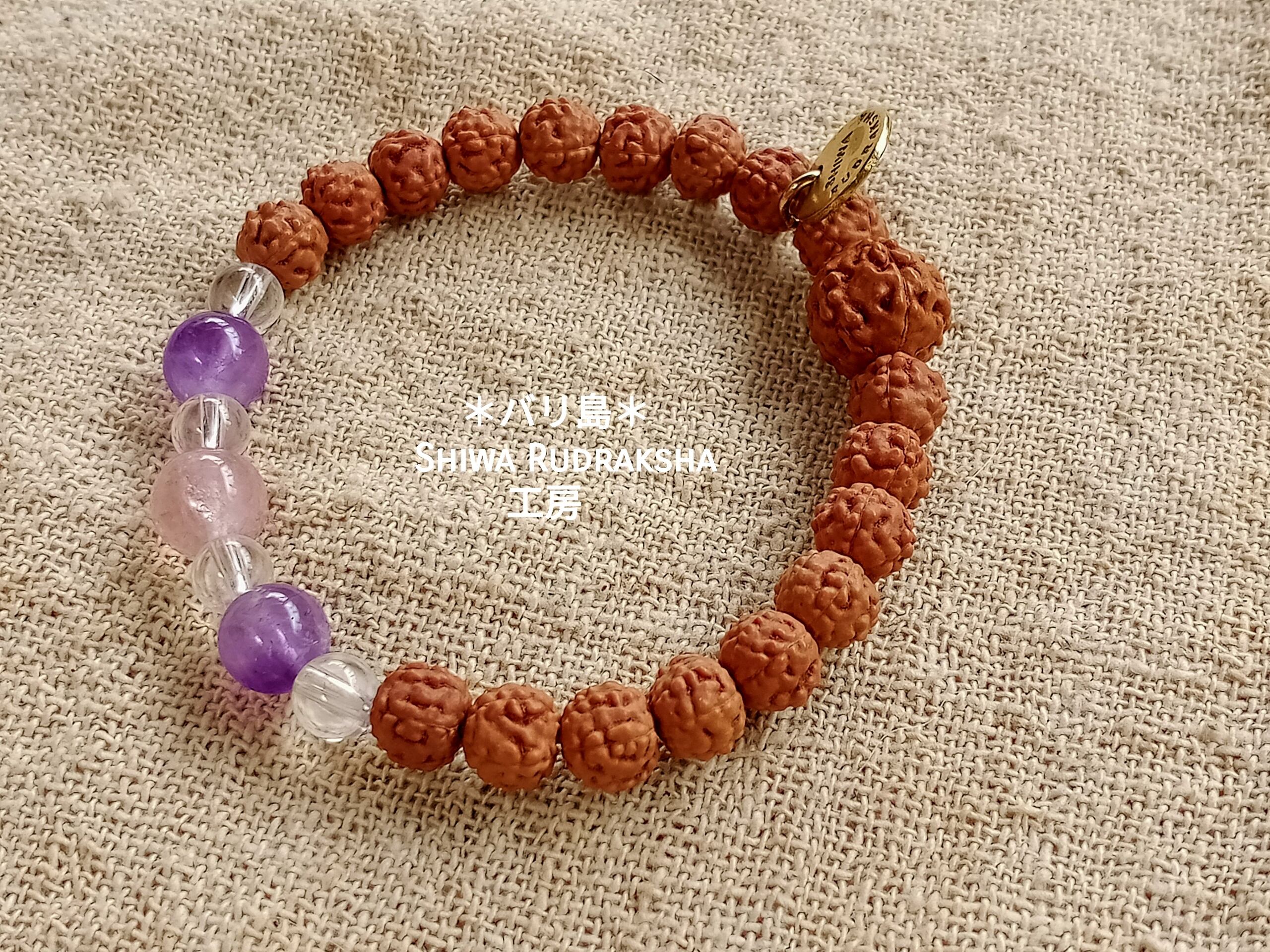 ★キスワントルドラクシャ5面(約6,5mm)・ルドラクシャ7面(約10mm)・クリスタル(約6mm)・アメジスト(約7,5mm)・ストロベリークウォーツ(約8mm)