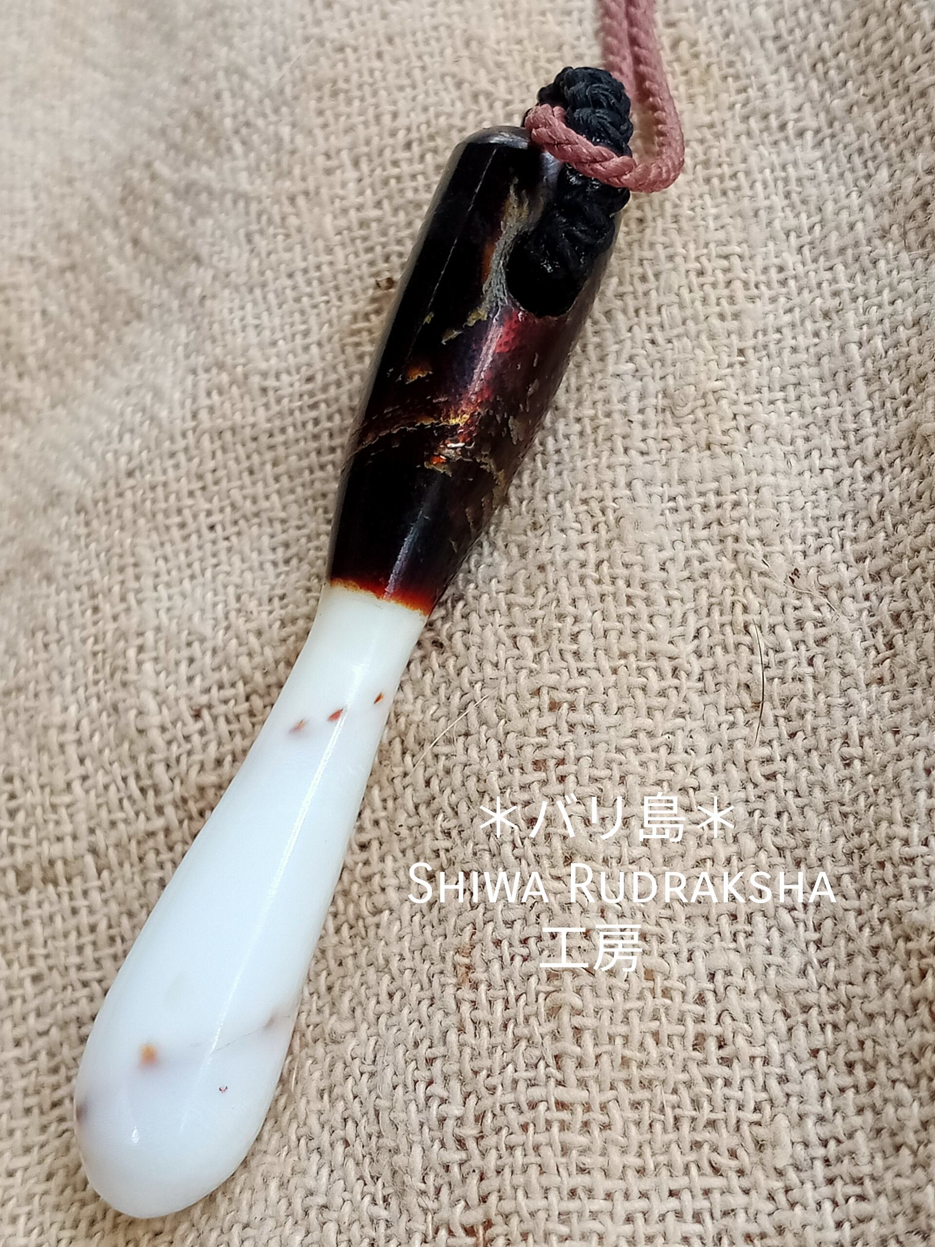 「ブラック・ウリ」と「珊瑚」をくっつけてペンダントトップに加工したものです。