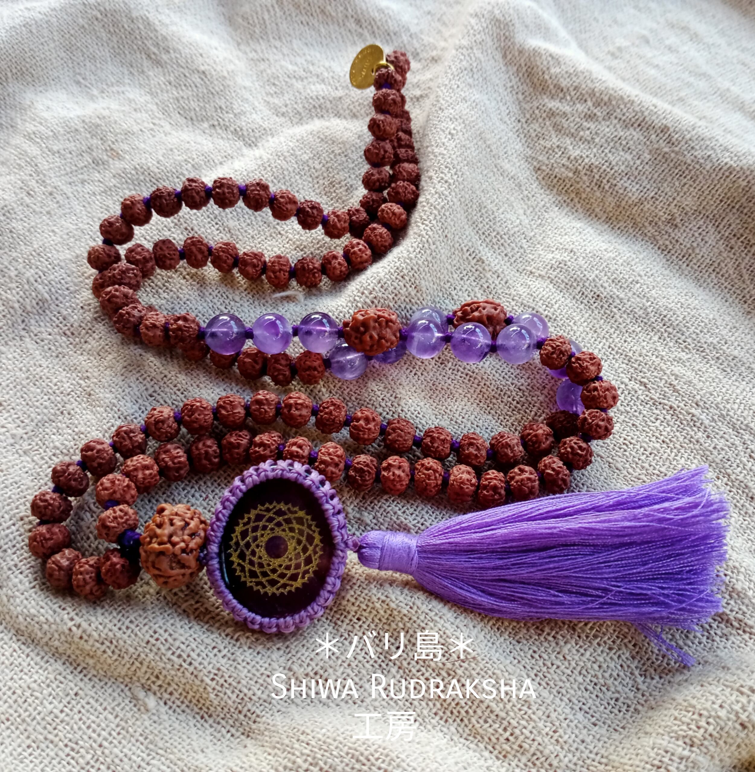 【クラウンチャクラ】3面&7面ルドラクシャ★108マーラー(アメジスト)