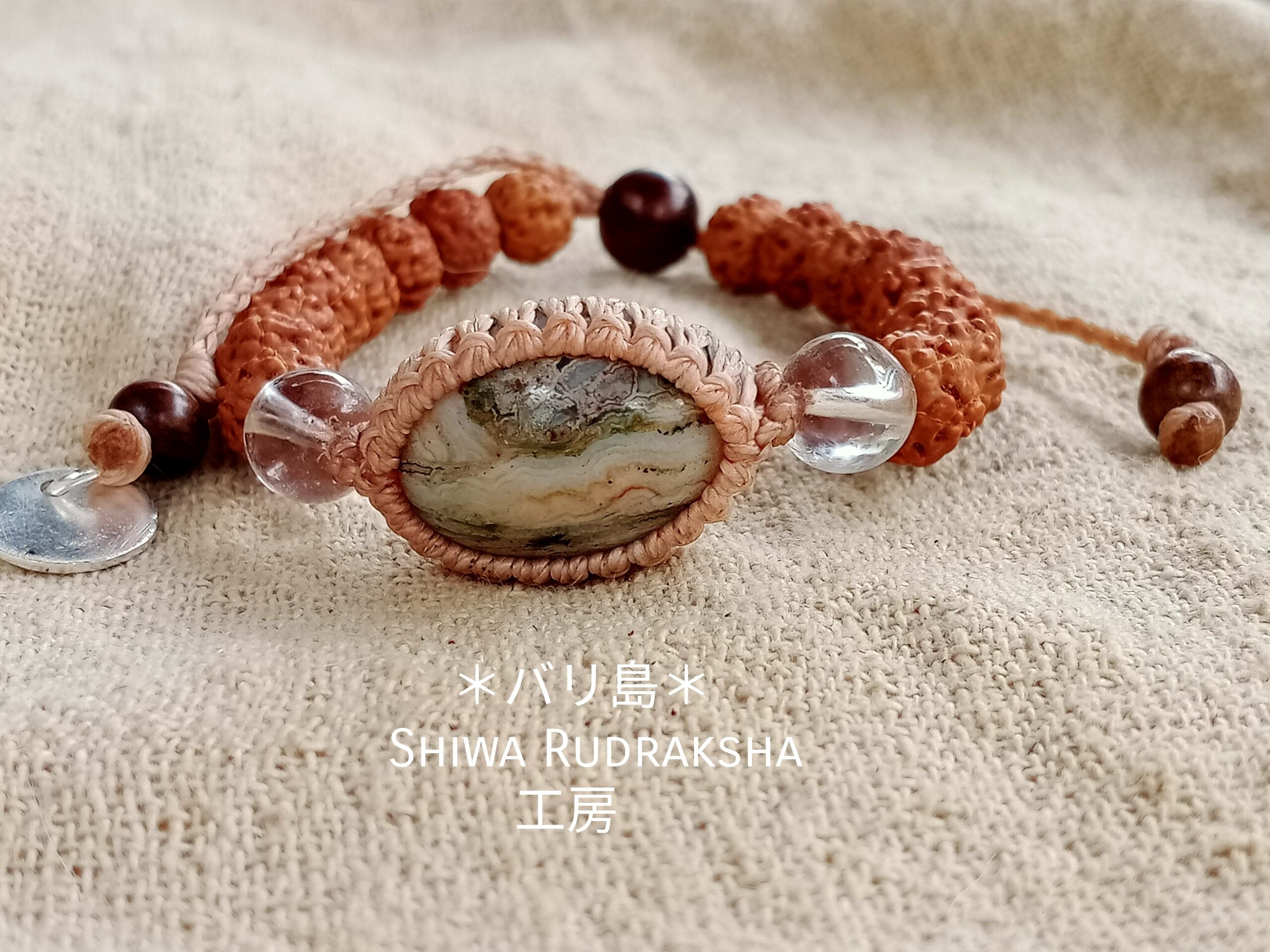 ★キスワントルドラクシャ5面(約8mm)・クリスタル(約8mm)・インドネシア産アゲート(約25mm)