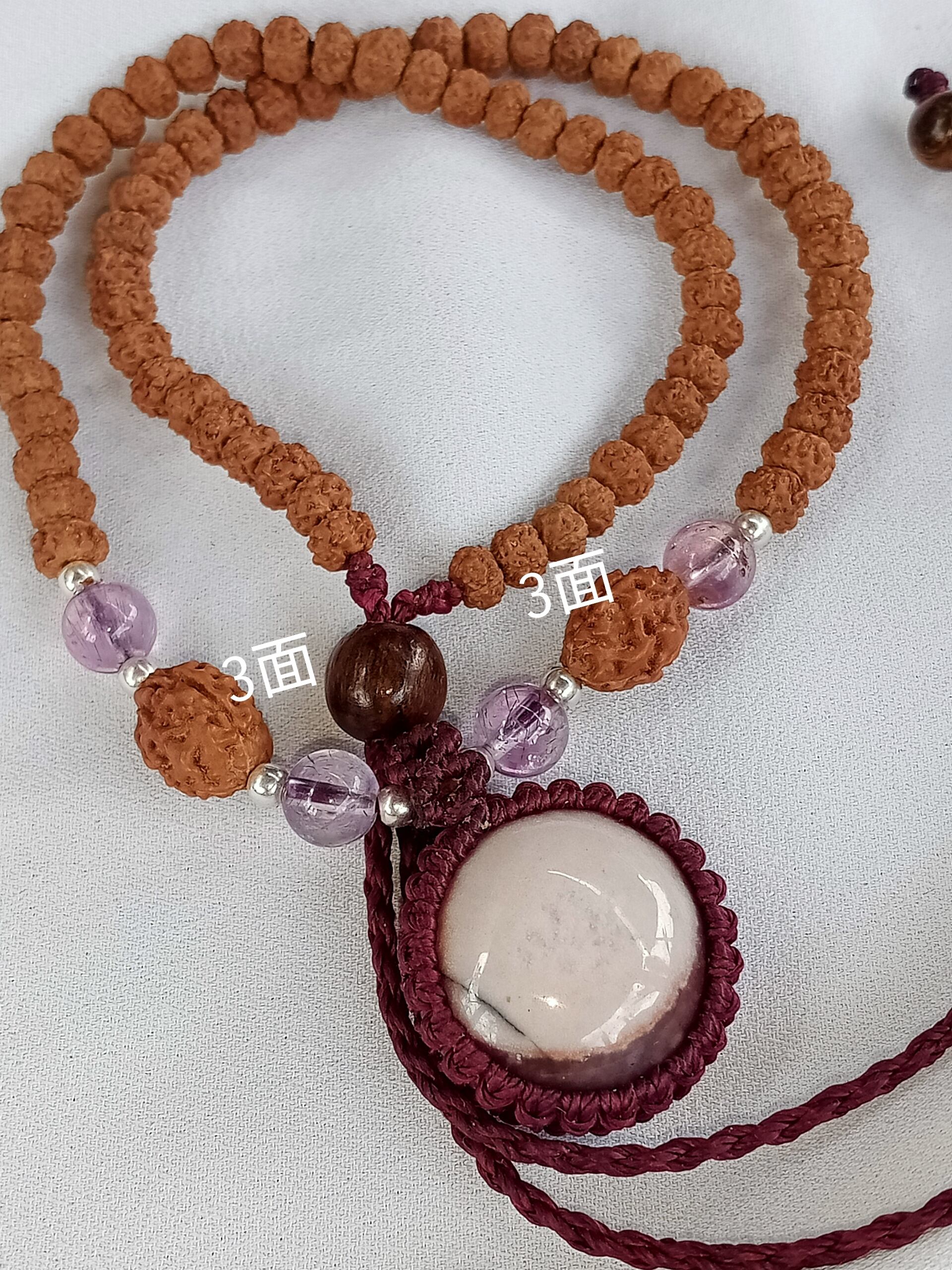★ルドラクシャ5面(約5mm)・ルドラクシャ3面(約縦10mm)・アメジスト(約7mm)・シルバー925ビーズ(約4mm)・ガハル(沈香)ウッドビーズ(約9mm&6mm)