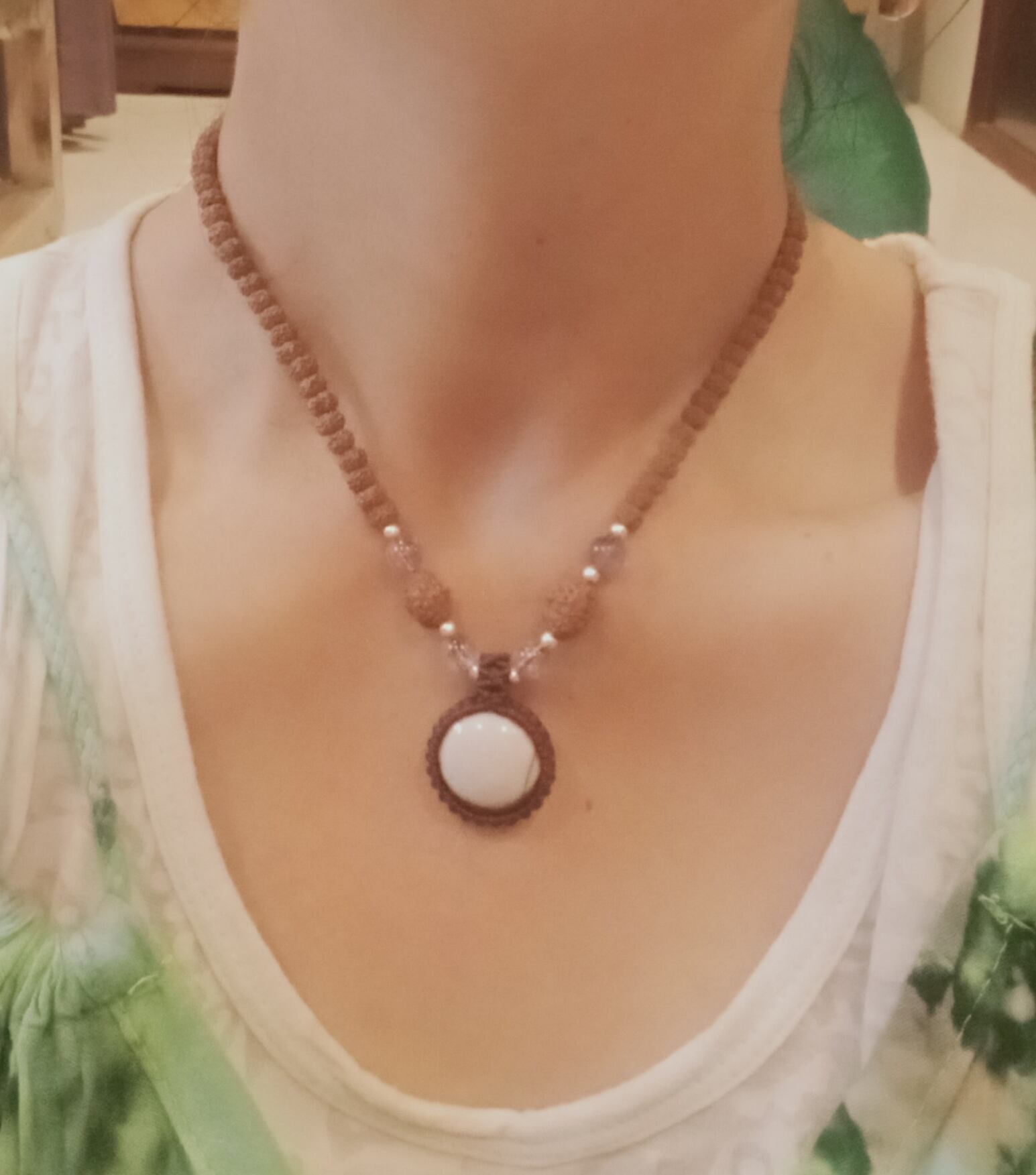お月様のような可愛い「インドネシア産アゲート」をマクラメ加工ペンダントトップにした、