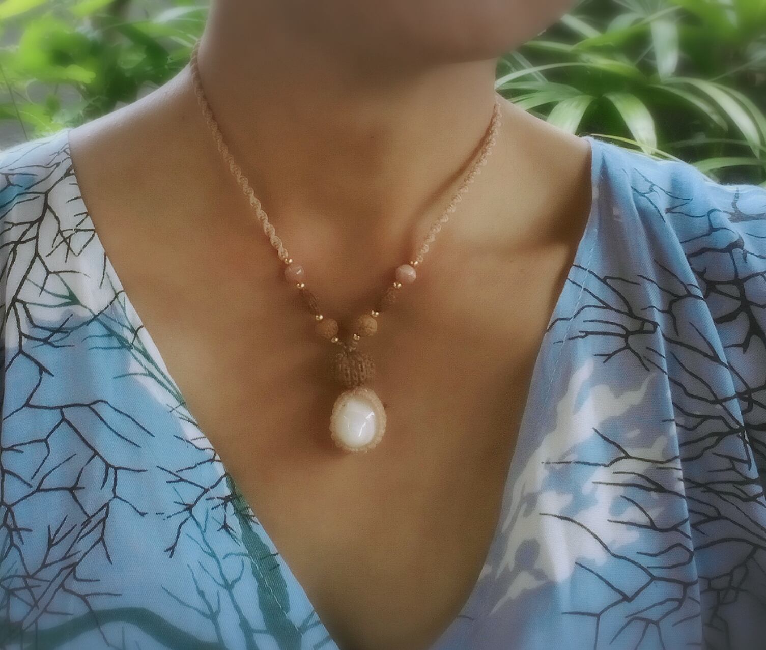【入魂儀式済ケオン】恋愛最強マクラメ加工ネックレス★ライトピーチ
