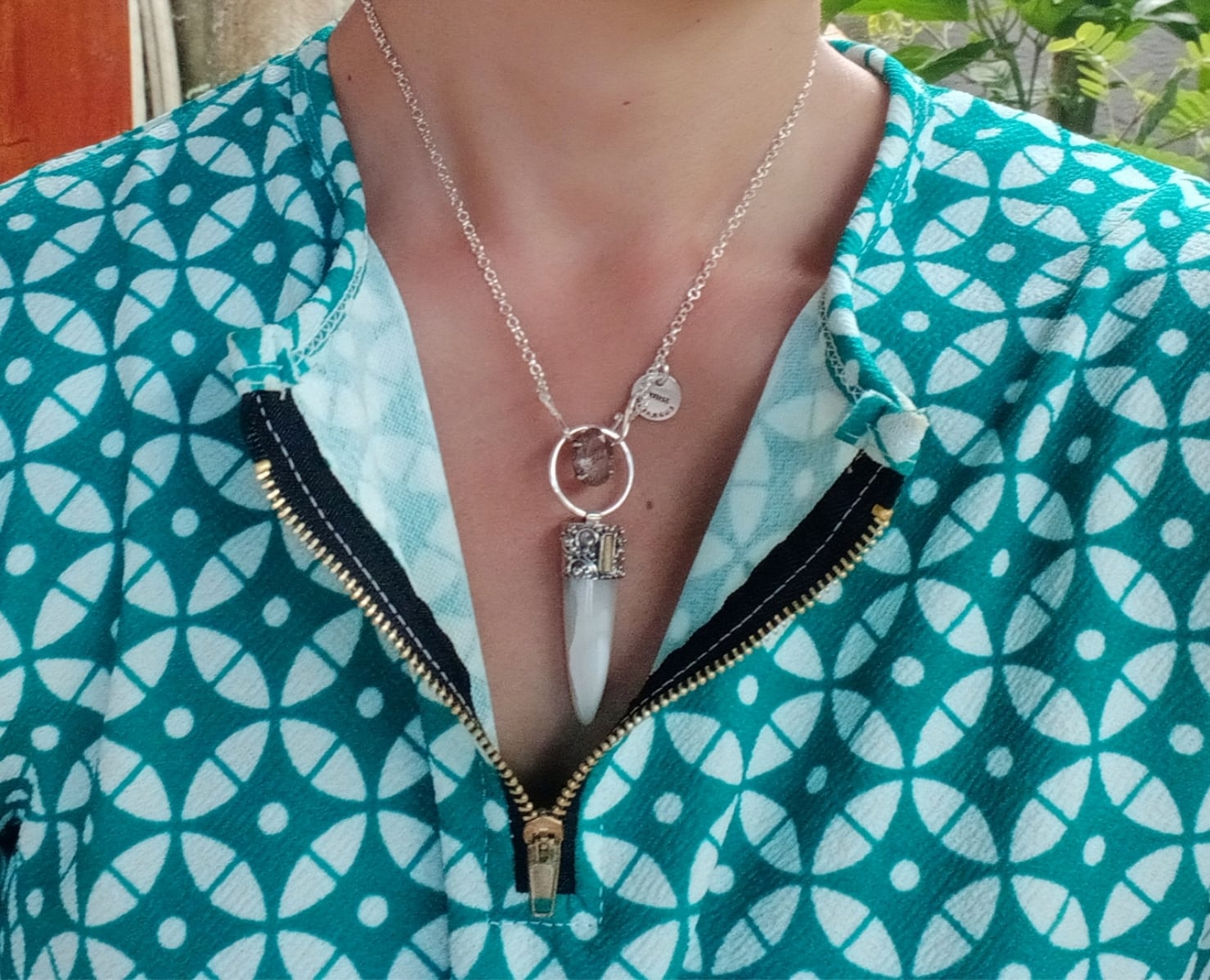 「ケオン」の茎部分を、円錐型に研磨して製作した、ペンジュラムネックレスです。