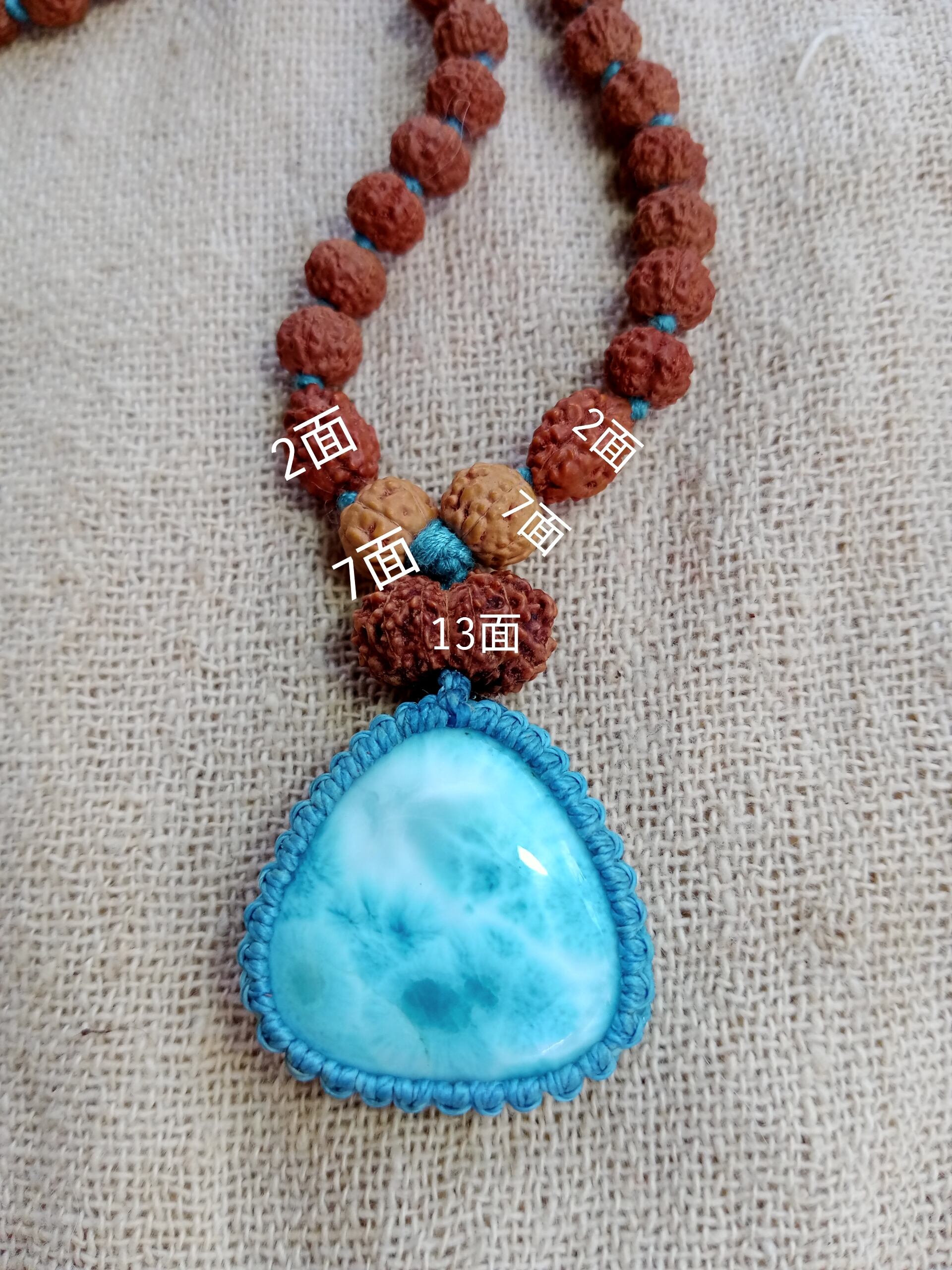 ★ルドラクシャ5面(約6,5mm)・ルドラクシャ2面(約縦19mm)・ルドラクシャ7面(約8mm)・ルドラクシャ13面(約15mm)・ラリマー(約28mm×約28mm×約8mm)
