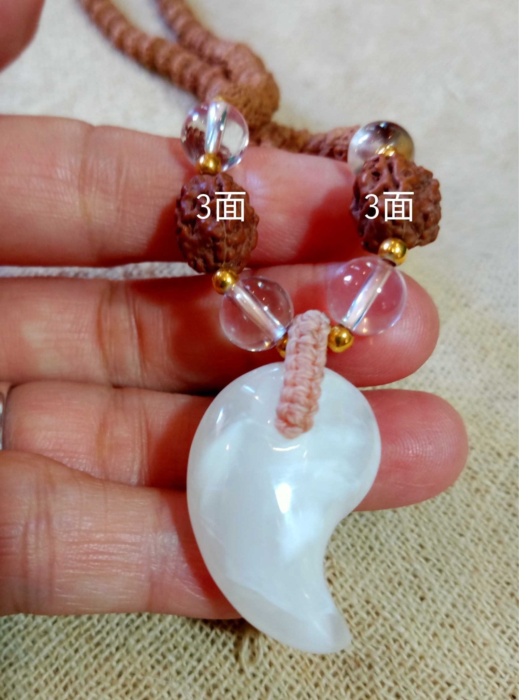 ★キスワントルドラクシャ5面(約6,5mm)・ルドラクシャ3面(縦約12mm)・クリスタル(約8mm)・勾玉ケオン(約30mm×約19mm×約10mm:天然のクラックあります。)