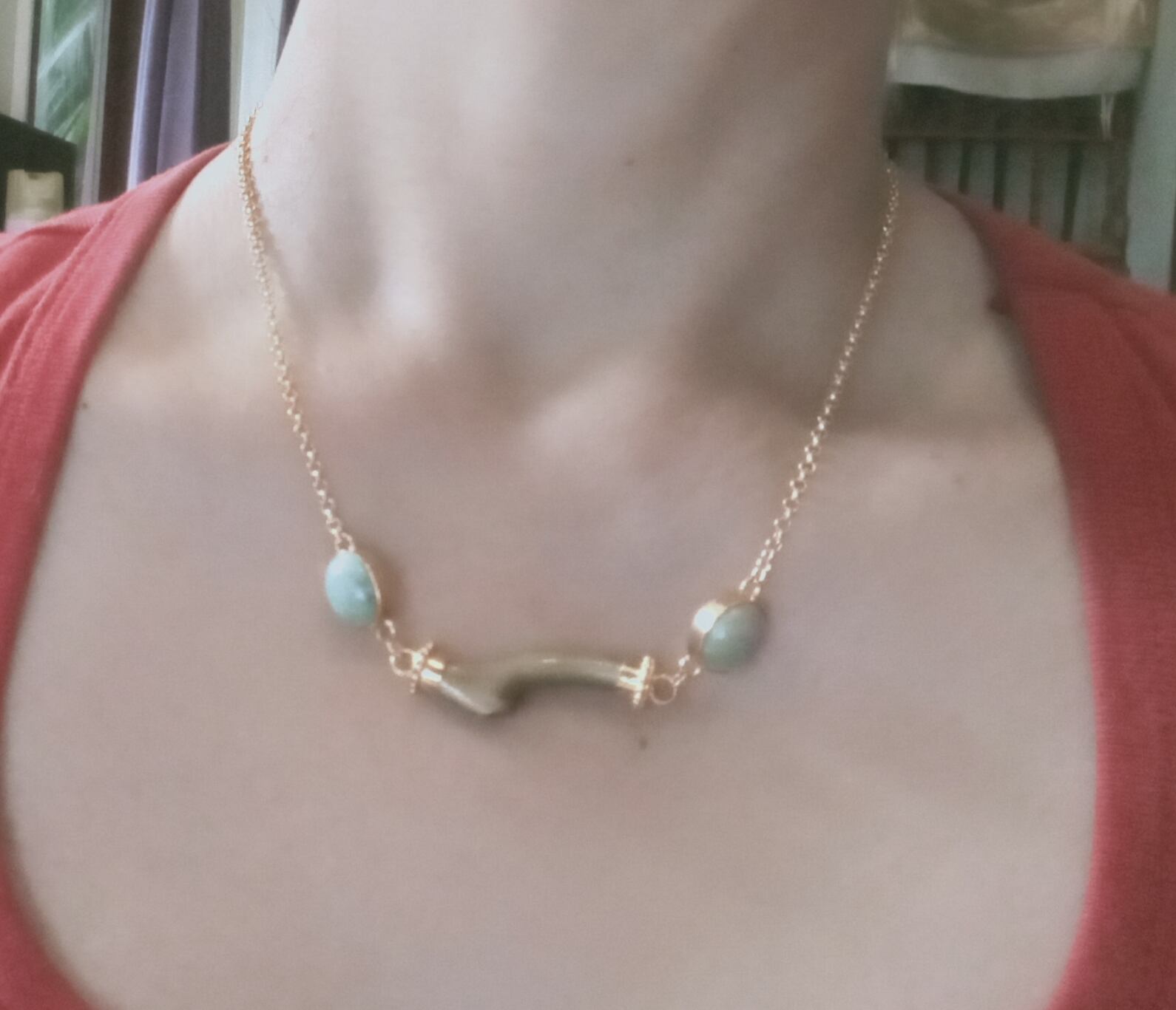 原木から買い付け製作した「グリーンウリ・ニュージーランド産」のシンプルなペンダントトップと、「フックサイト」のチェーンネックレスです。