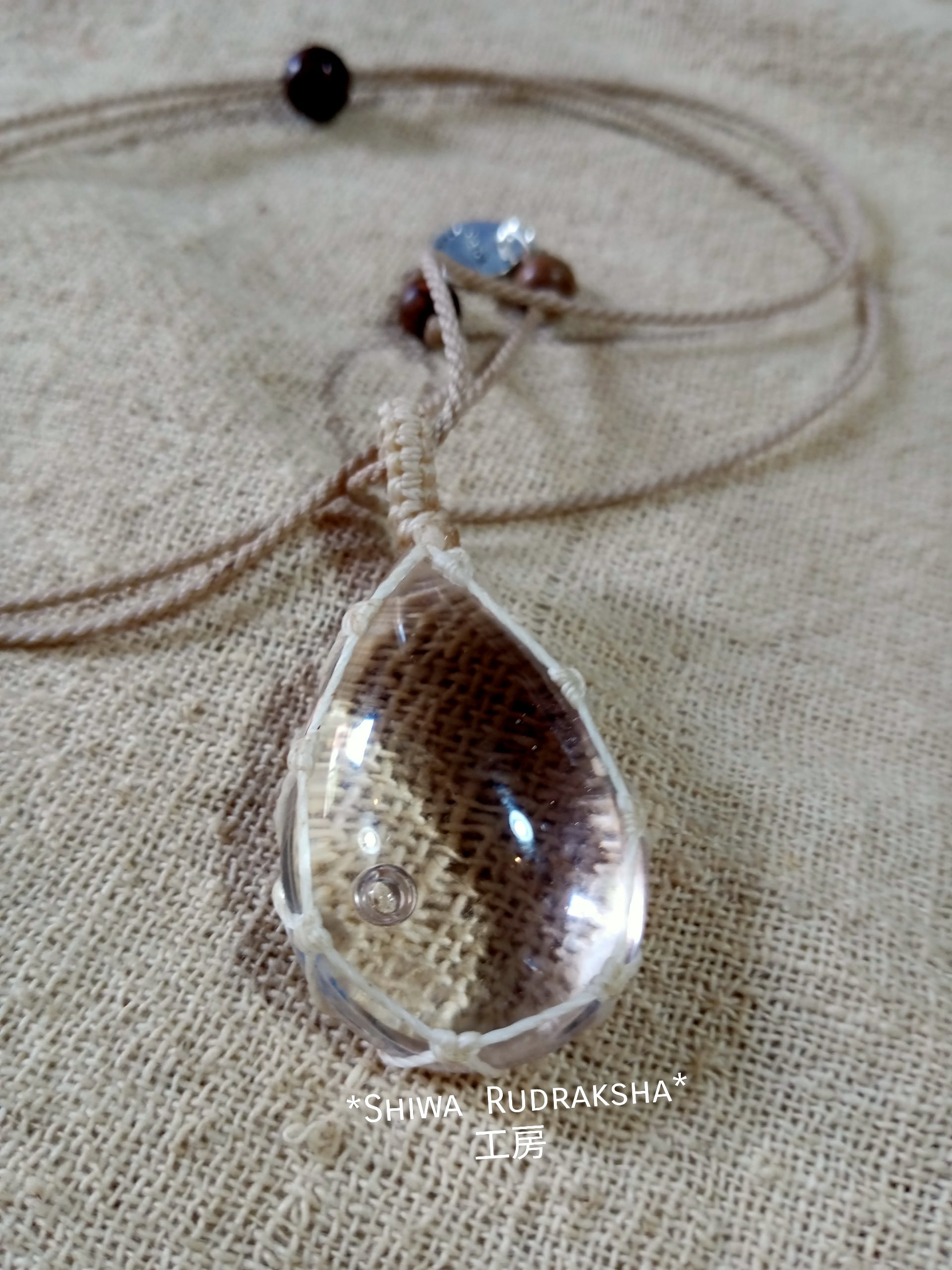 【インドネシア産アンダラクリスタル】クリアカボションタイプ★マクラメ紐ネックレス
