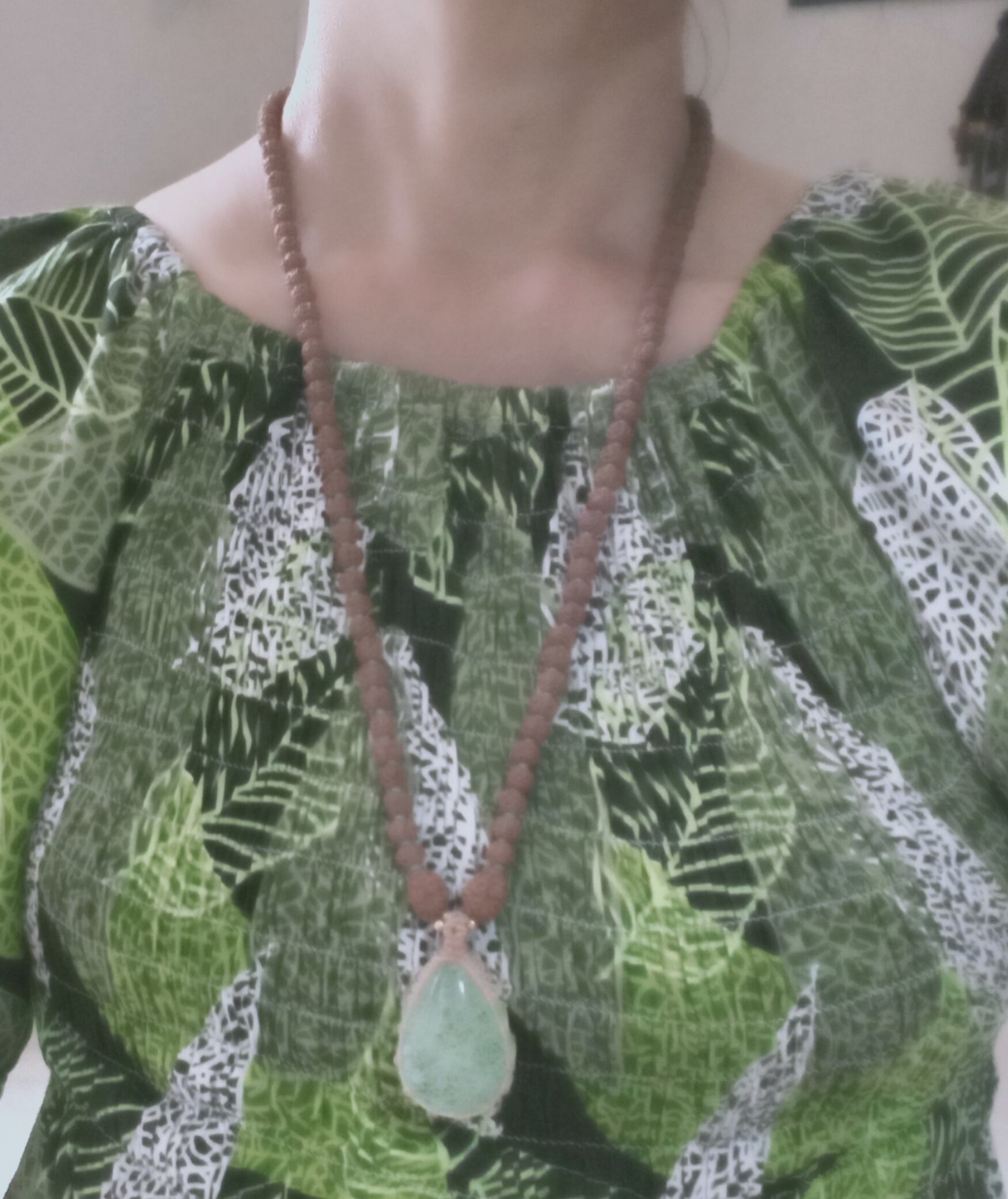 「アンダラクリスタル・インドネシア産」をペンダントトップにした108粒マーラーネックレスです。