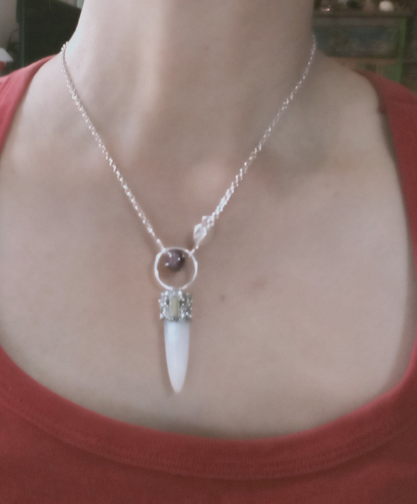 「ケオン」の茎部分を、円錐型に研磨して製作した、ペンジュラムネックレスです。