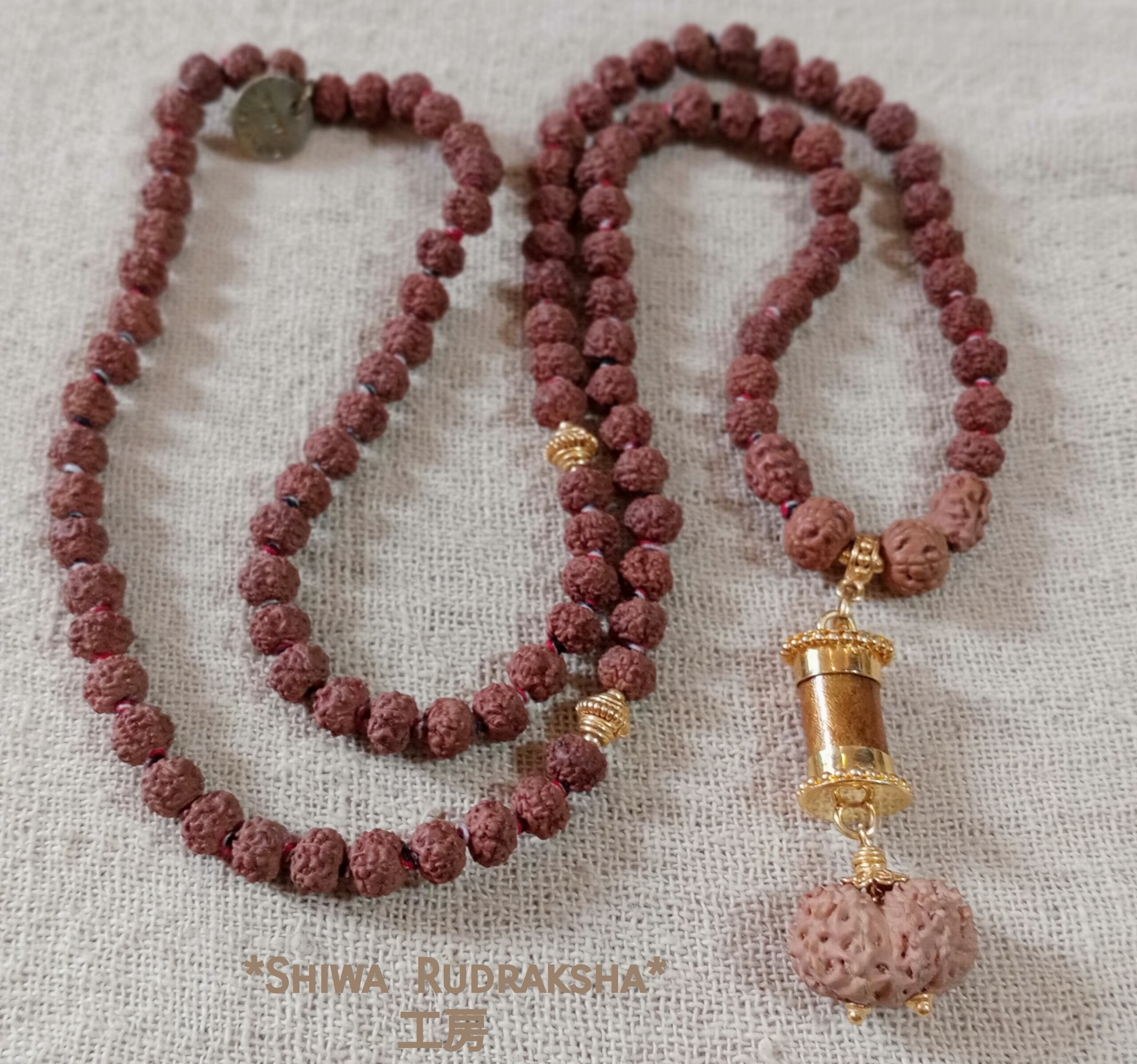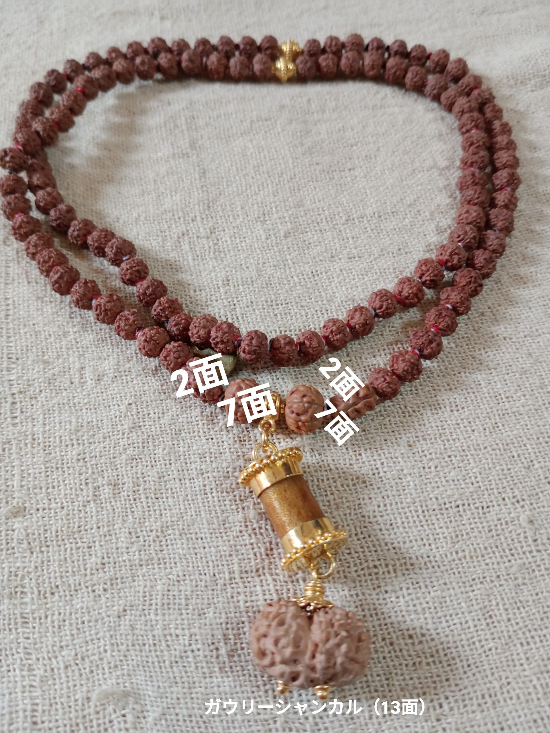 ルドラクシャは、2面&7面&ガウリーシャンカラを組み入れ、それ以外は5面ルドラクシャ(アグニ神)を使用しています。