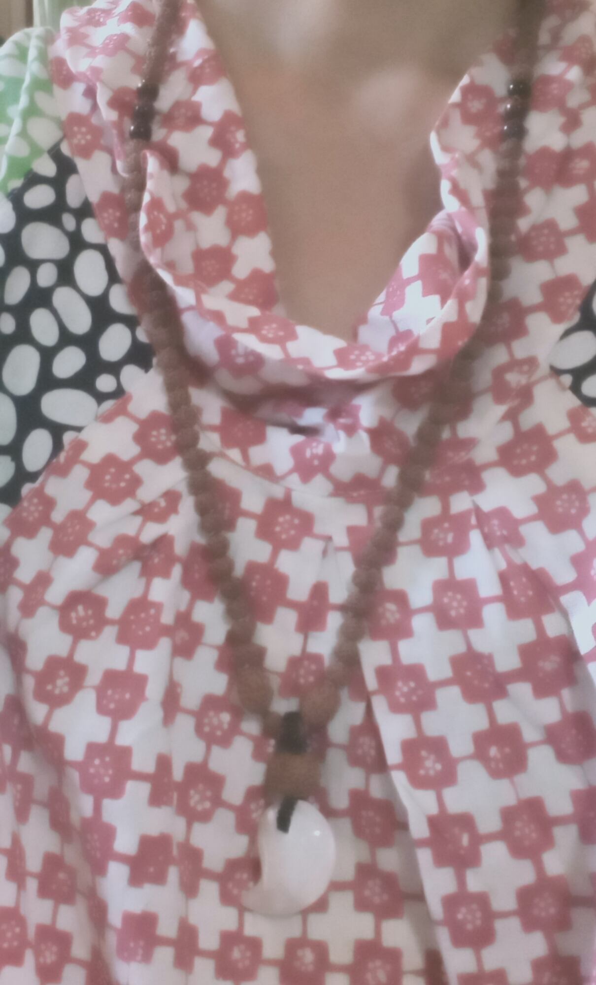 ★ルドラクシャの間:赤白黒のコットン糸(バリ島ヒンドゥーでは、ヒンドゥー三大神を表すTURIDATUと呼ばれる色です。)