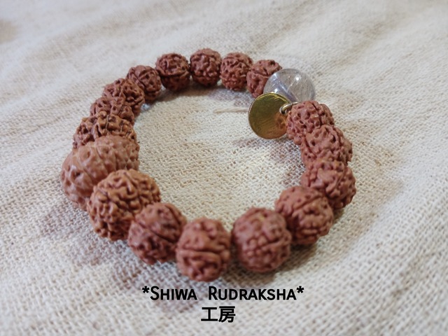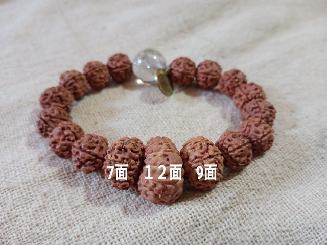 クオリティの良い12面ルドラクシャを真ん中に、7面&9面ルドラクシャで挟みました。