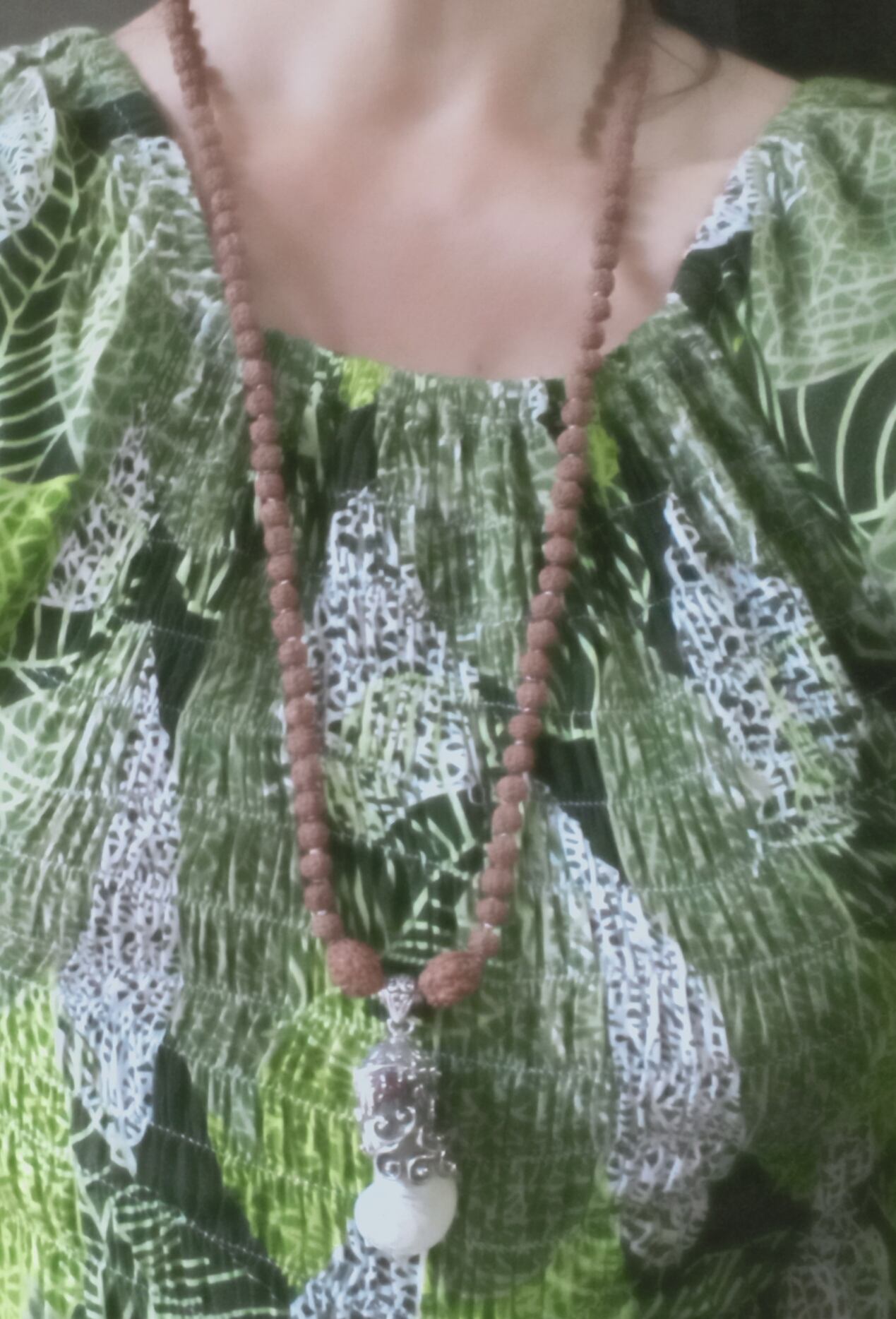 ルドラクシャは、ヒンドゥー三大神が内在すると言われる「3面(アグニ)」をペンダントトップの左右に組み入れ、それ以外のルドラクシャは5面(ルドラ)です。