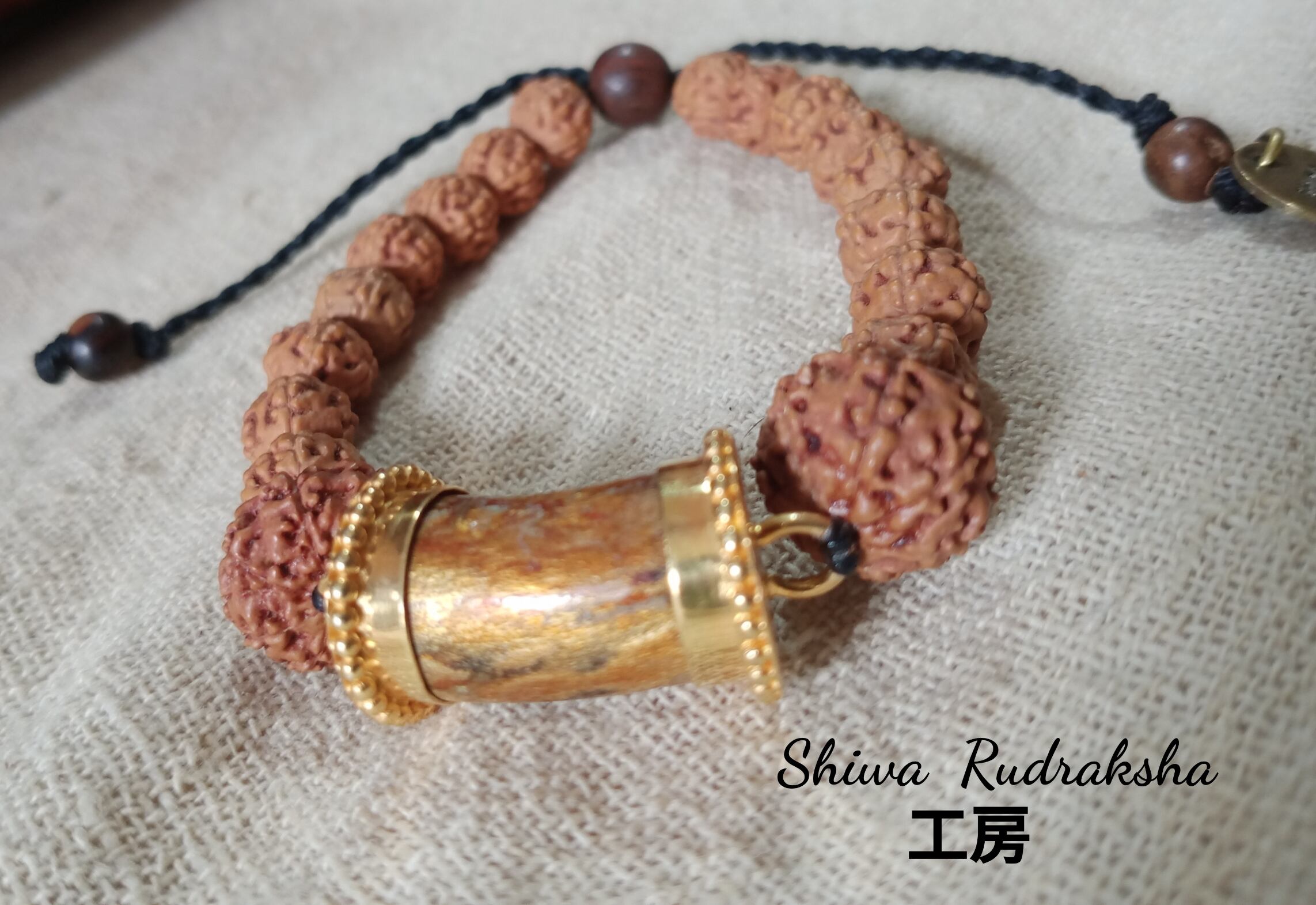「ゴールドウリ」の左右横には、商売繫盛には欠かせない『8面ルドラクシャ(ガネーシャ)』と、幸福と繫栄をもたらすと言われる『ラクシュミー女神』をあらわす『7面ルドラクシャ』を組み入れました。