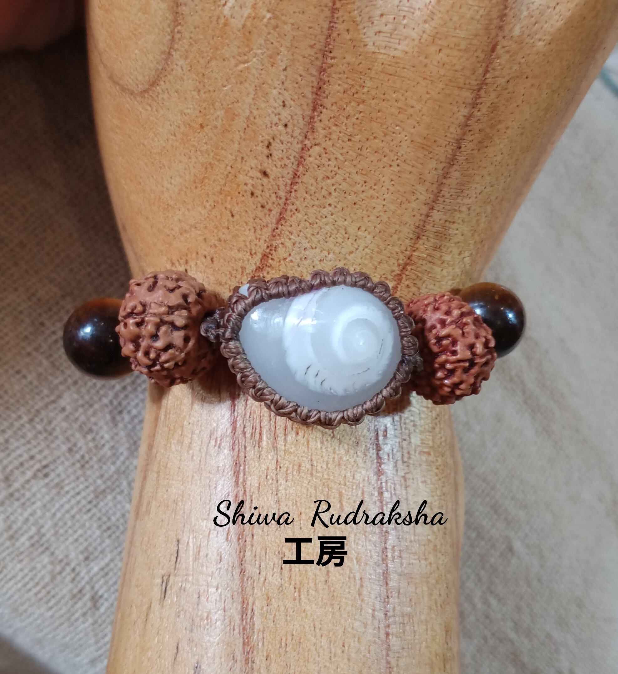 「渦巻ケオン」の左右横には、障害を除去し、仕事運&健康運アップには欠かせない『8面ルドラクシャ(ガネーシャ)』と、外敵と戦い自分自身のネガティブ思考とも戦ってくれると言われる『9面ルドラクシャ(ドゥルガー女神)』を組み入れています。
