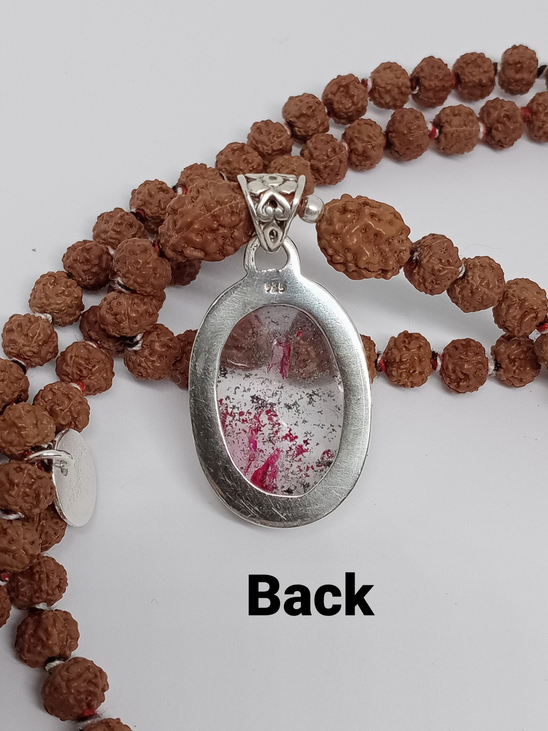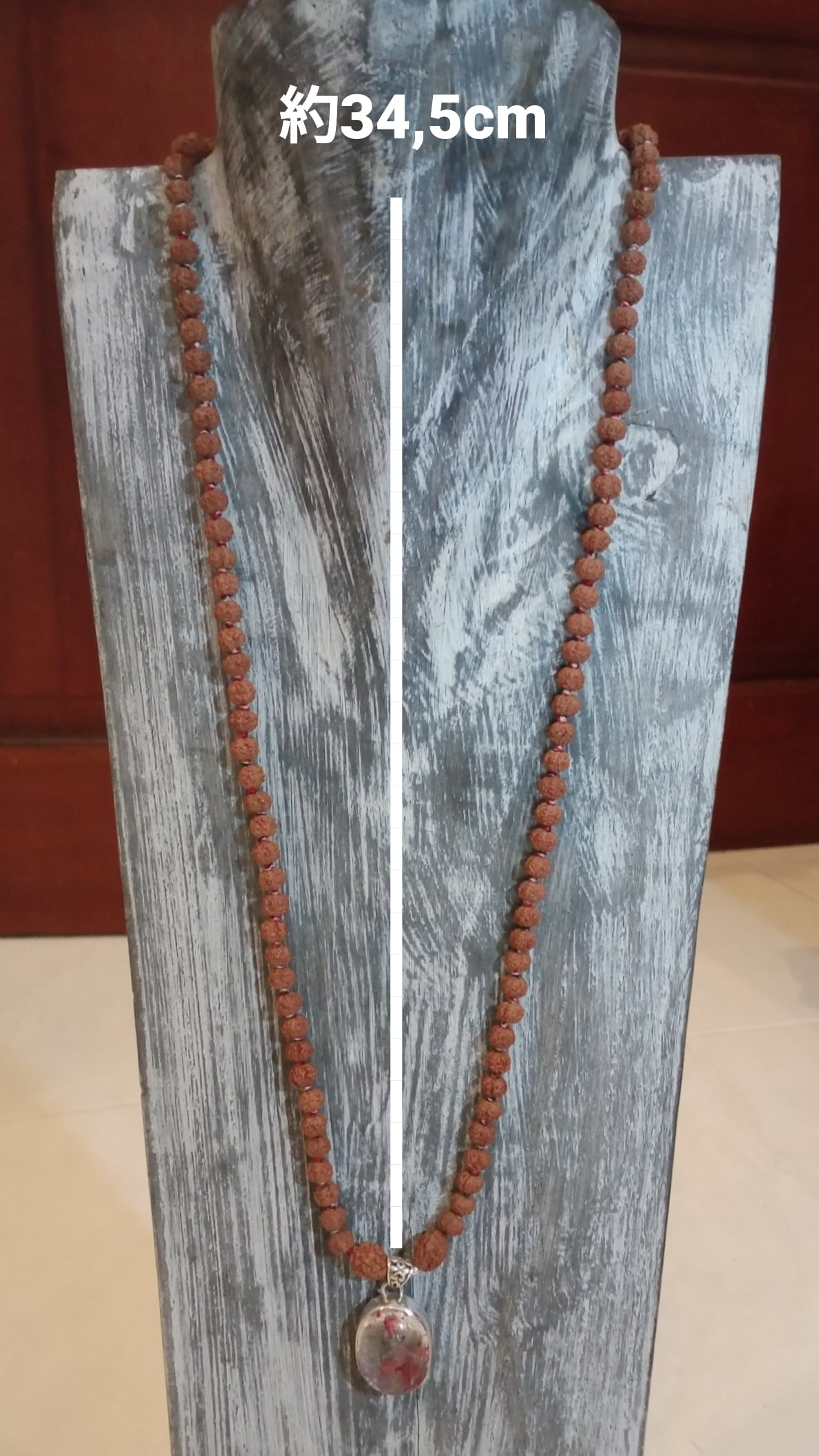 ペンダントトップの横には「ヒンドゥー三大神が内在する」と言われる「3面アグニ」をあらわすルドラクシャを組み入れました。