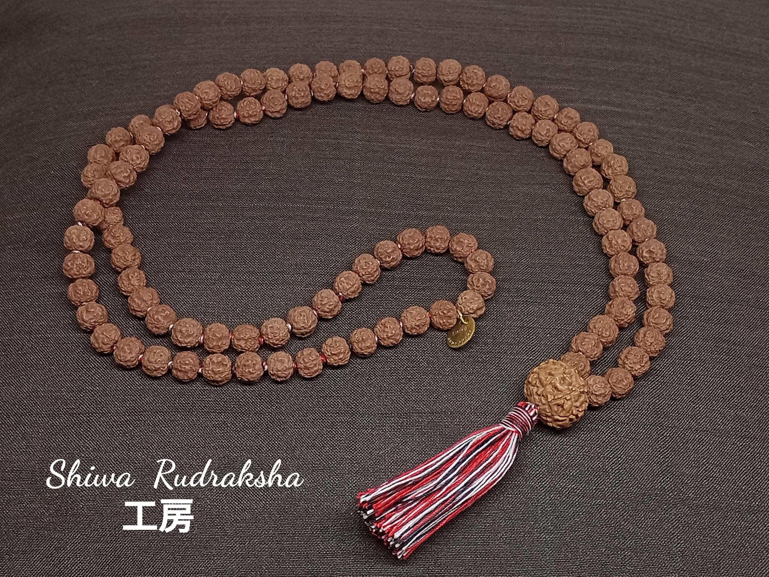 シンプルなルドラクシャだけの108粒マーラーは、お守りとして身に付けるだけではなく、