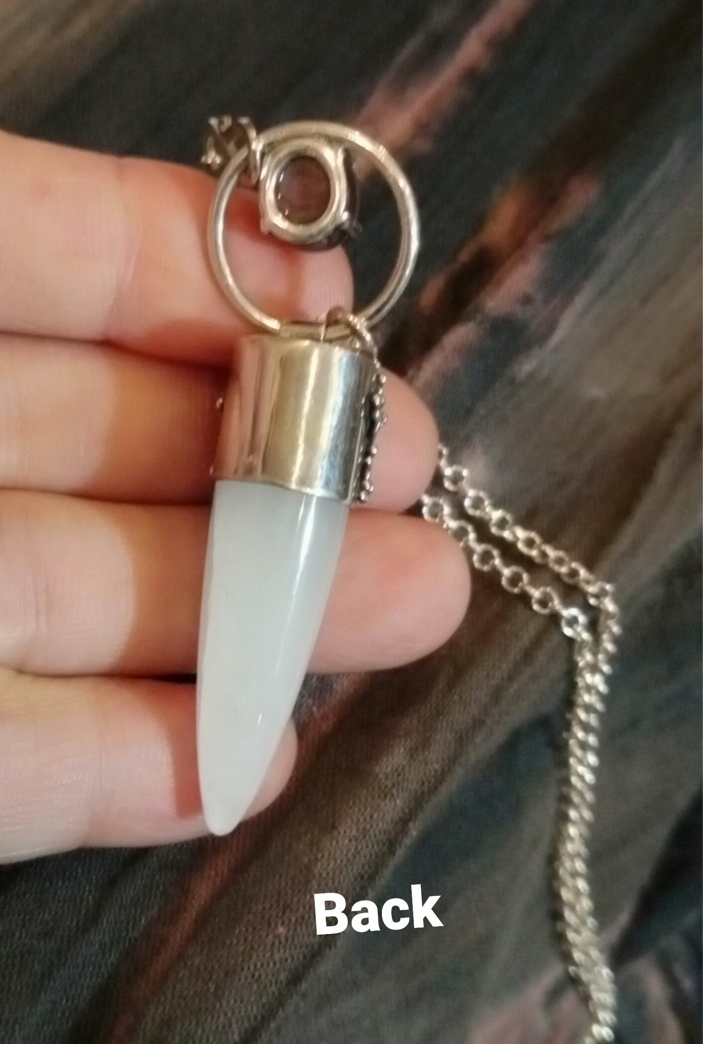 「ケオン」の茎部分を、円錐型に研磨して製作した、ペンジュラムネックレスです。