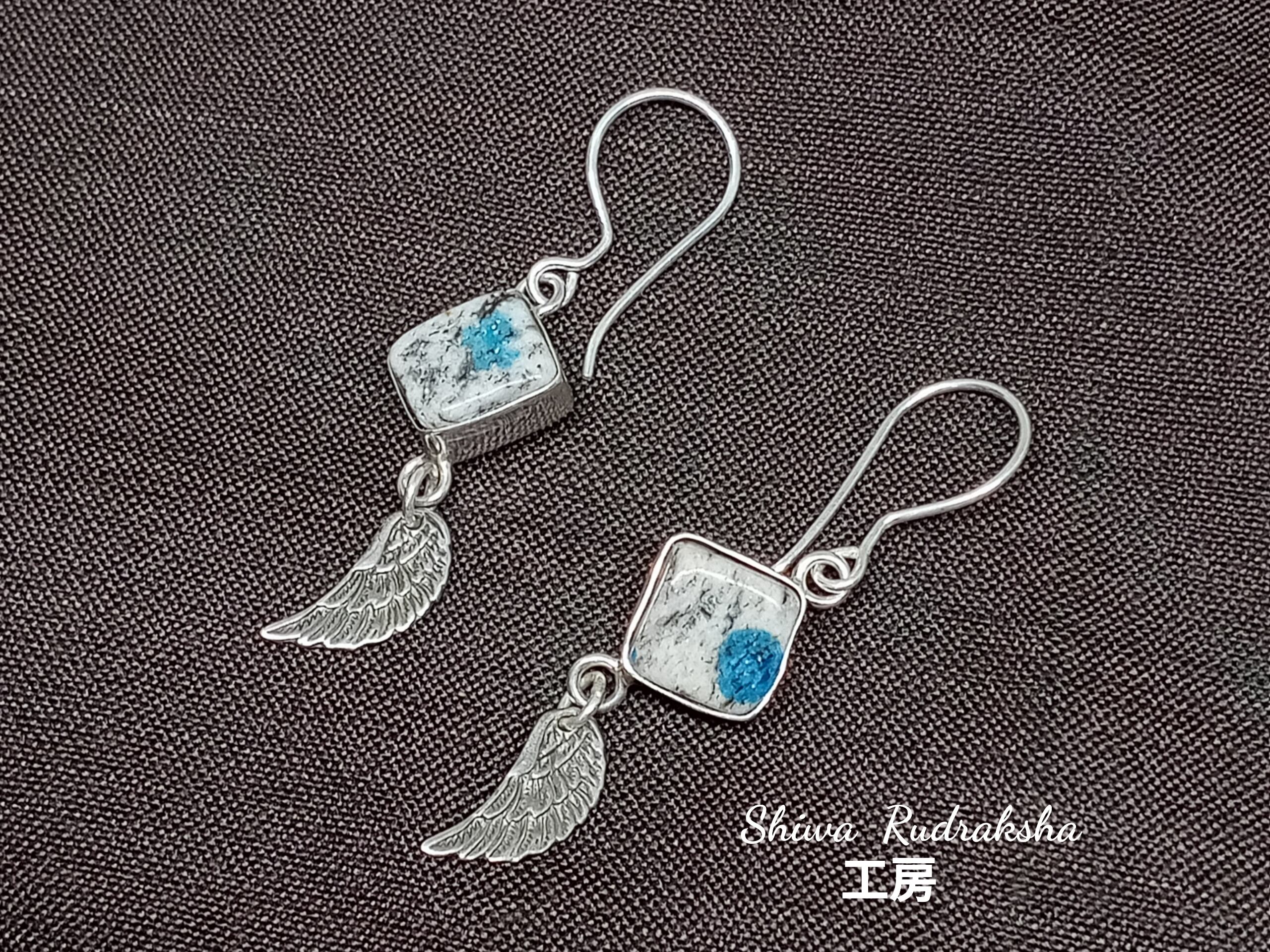 【K2ブルー】特注オリジナルピアス★天使の羽★シルバー925(A)