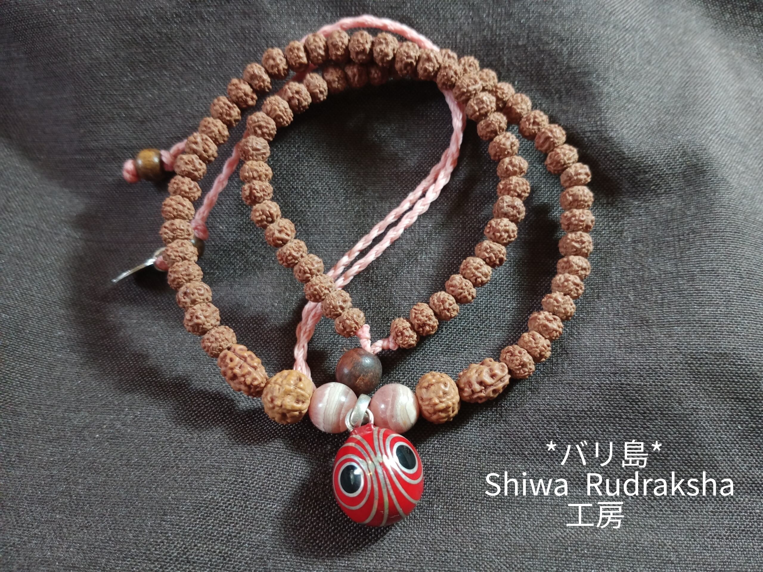 ルドラクシャは、「ガムランボール」の両サイドに、「人間関係を円滑にし、自分自身との調和を図る」と言われる「ルドラクシャ2面(シヴァ&パールヴァティ)」と、「幸福と繫栄」の「ルドラクシャ7面(ラクシュミー)」を組み入れました。