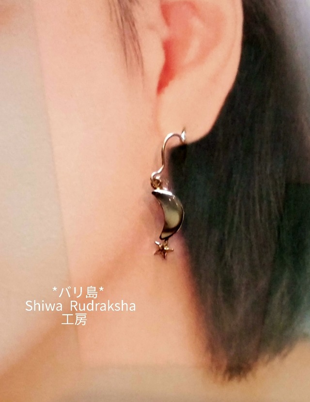 再入荷!【入魂儀式済ケオンカボション】ブラン(月)とビンタン(星)★シルバーピアス(C)