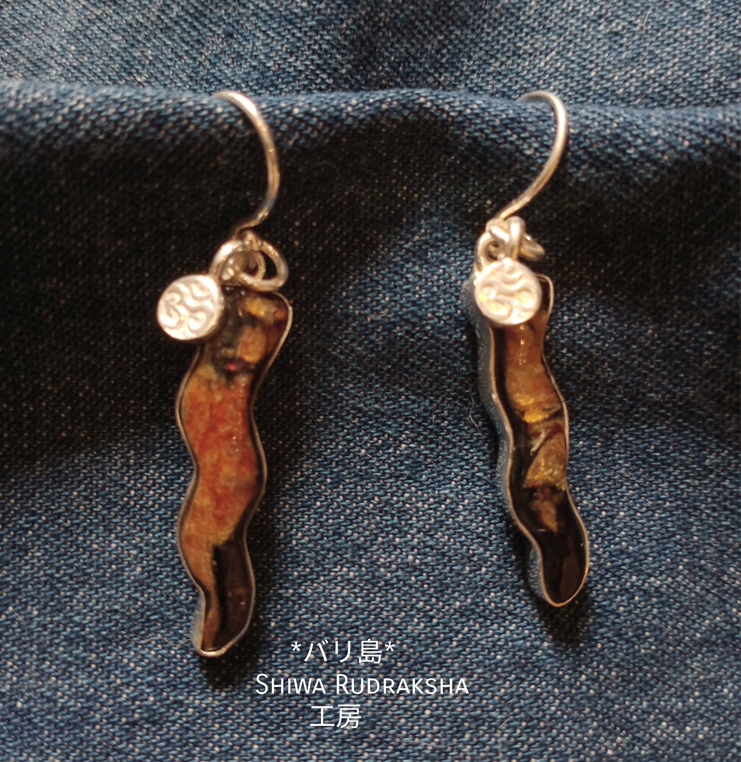 インド洋の珊瑚の木『ゴールドウリ』を装飾したシルバーピアスです。