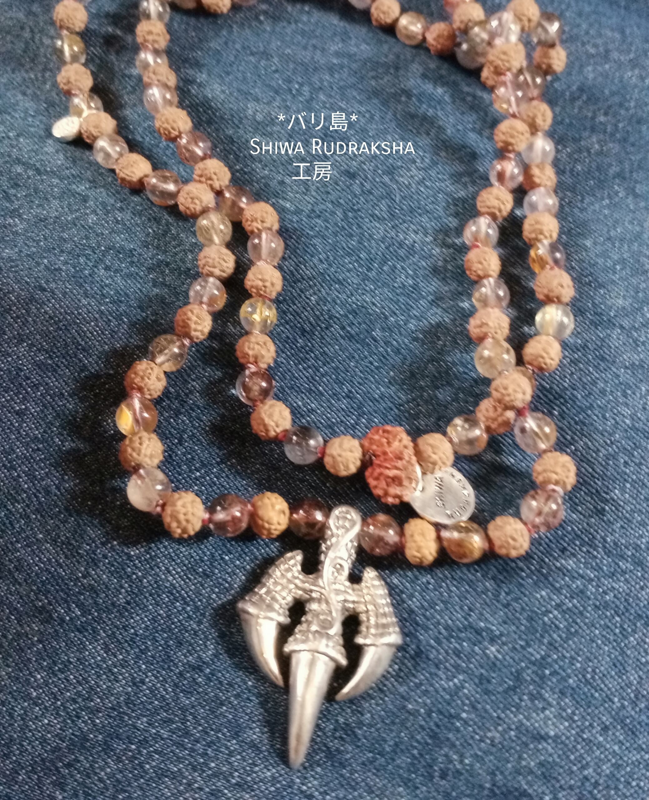 ★ルドラクシャ10面(約11mm)・キスワントルドラクシャ5面(約6mm)・ルチルクウォーツ(約6mm)・イーグル(鷲)の爪シルバー(約6mm)