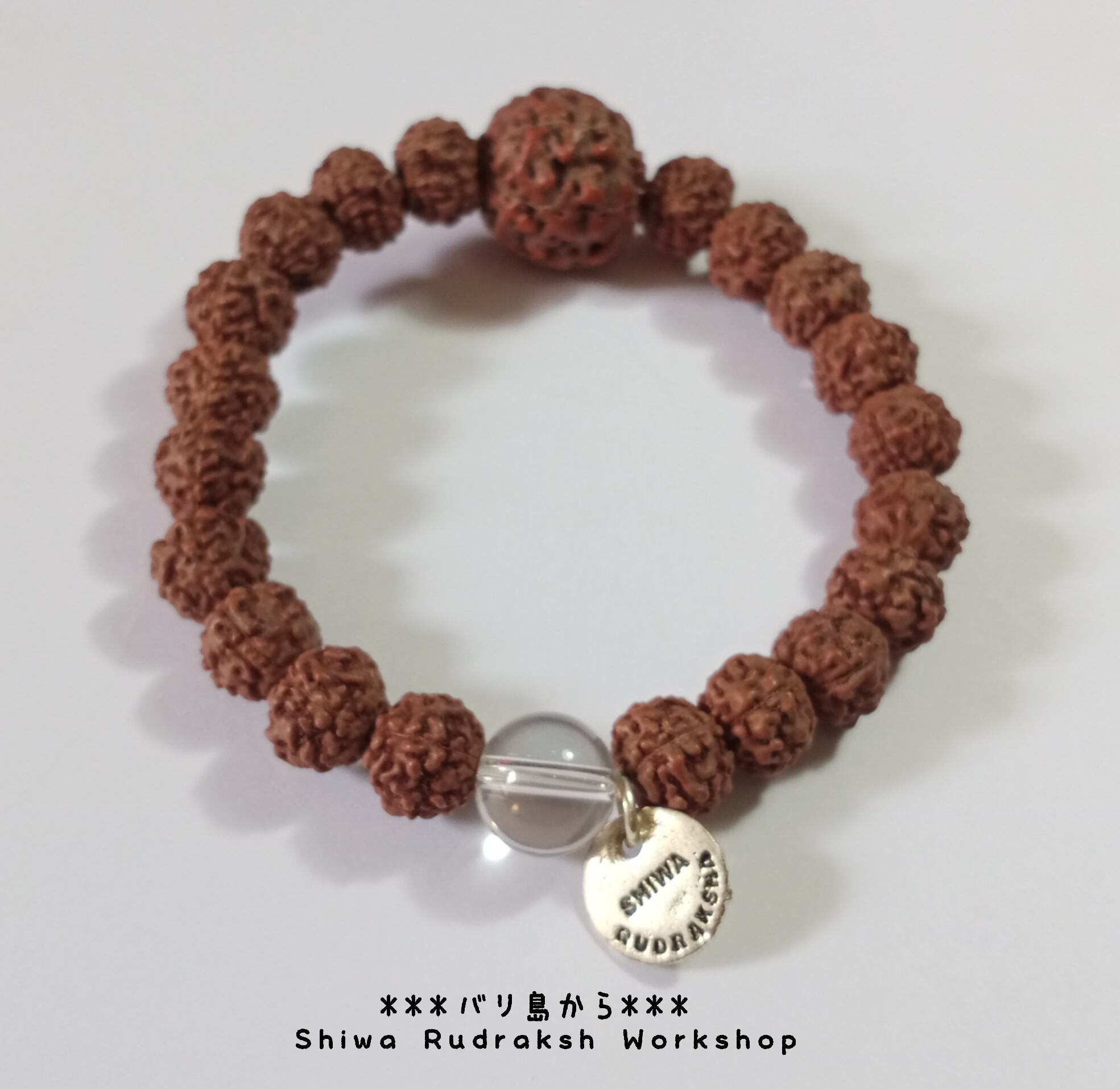 「神聖な波動を周囲に与え、チャクラに作用する。」と言われる5面ルドラクシャと「クリスタル」のみ使用のシンプルなブレスレットです。