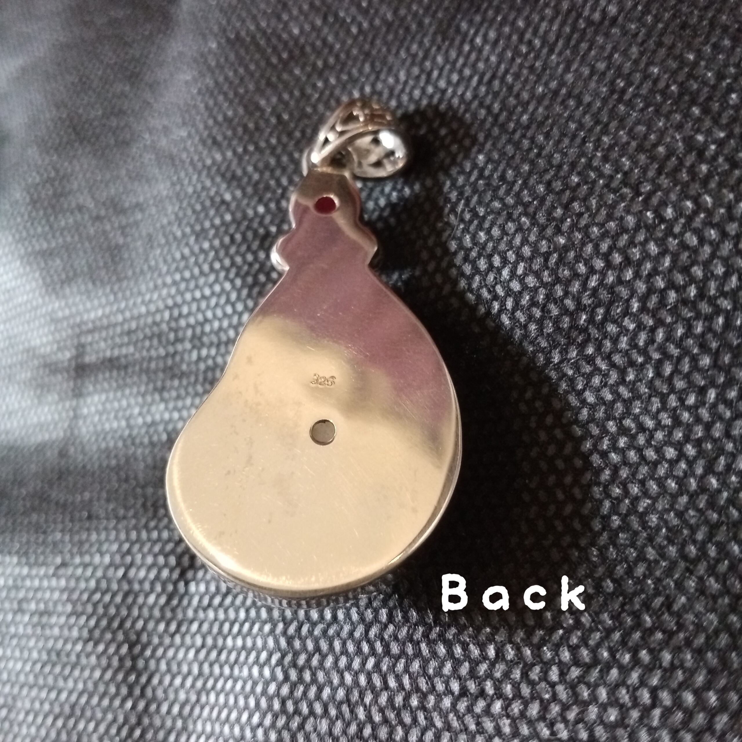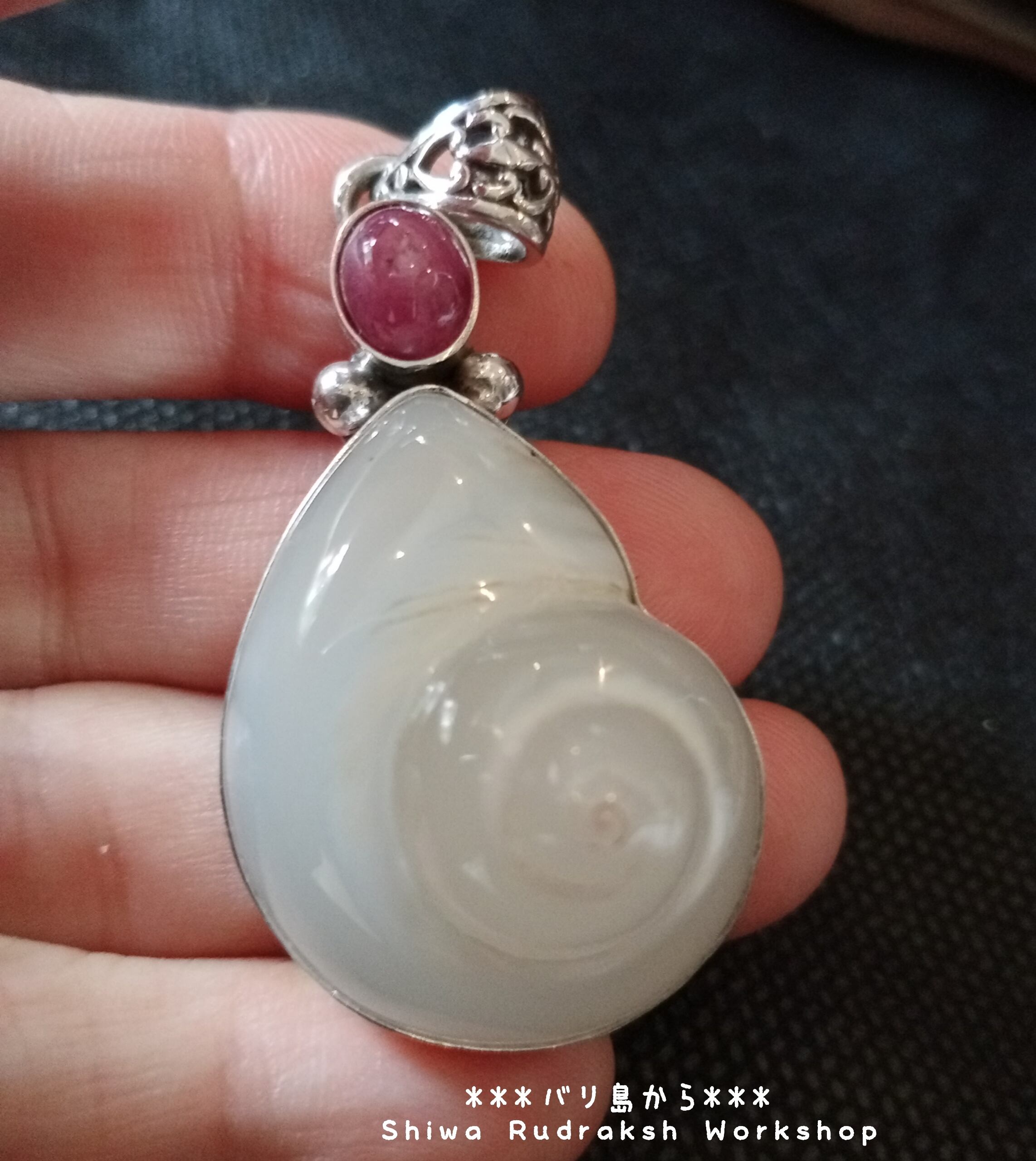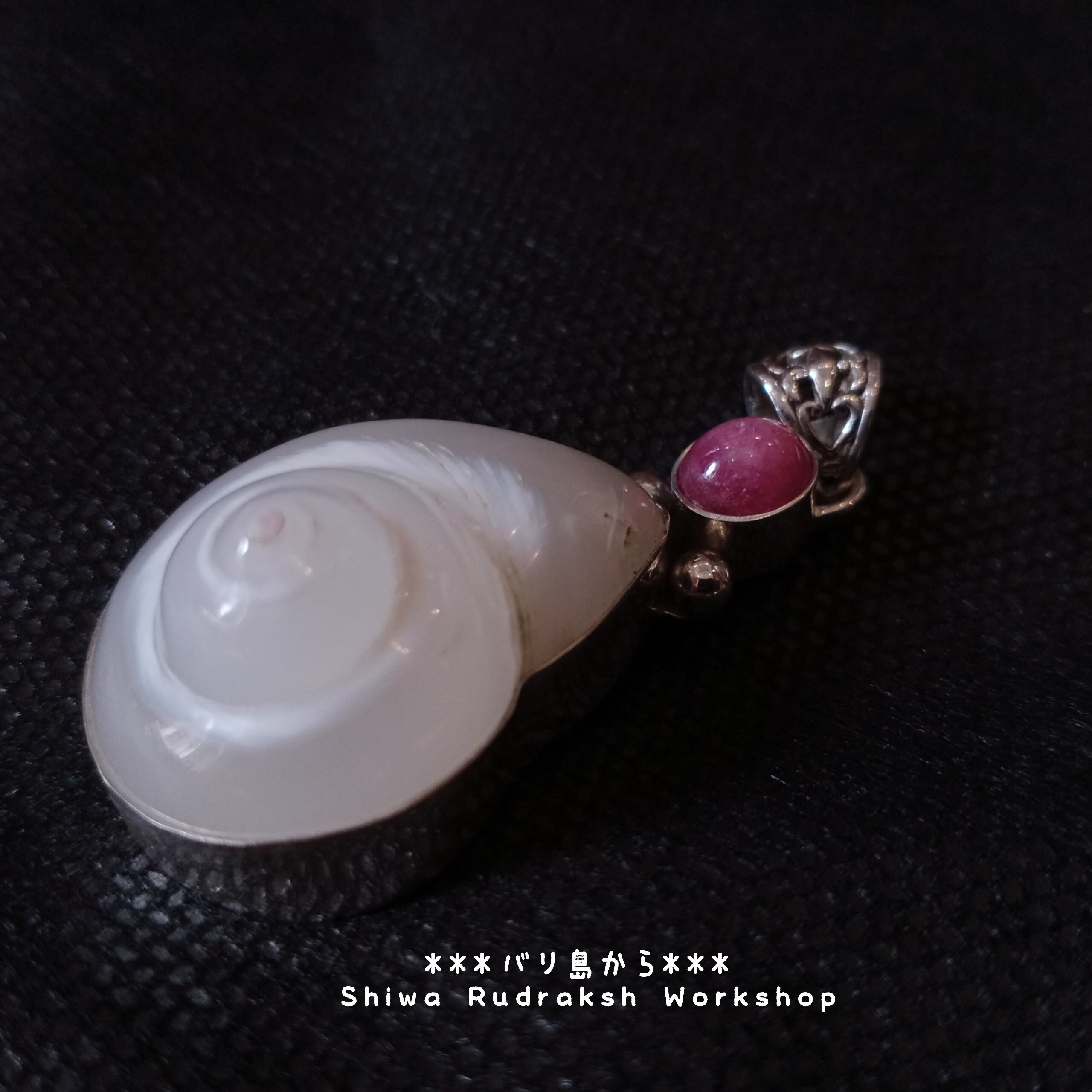 インドネシア、バリ島よりお届けします♪ 特注でシルバー925加工したケオンのペンダントトップです。 ケオンの状態は良いですが、天然のクラック(ひび割れ)があります。 トップには高品質の「ルビー」を入れています。(*^^*) ★ケオン:約33mm×約23mm×約17mm