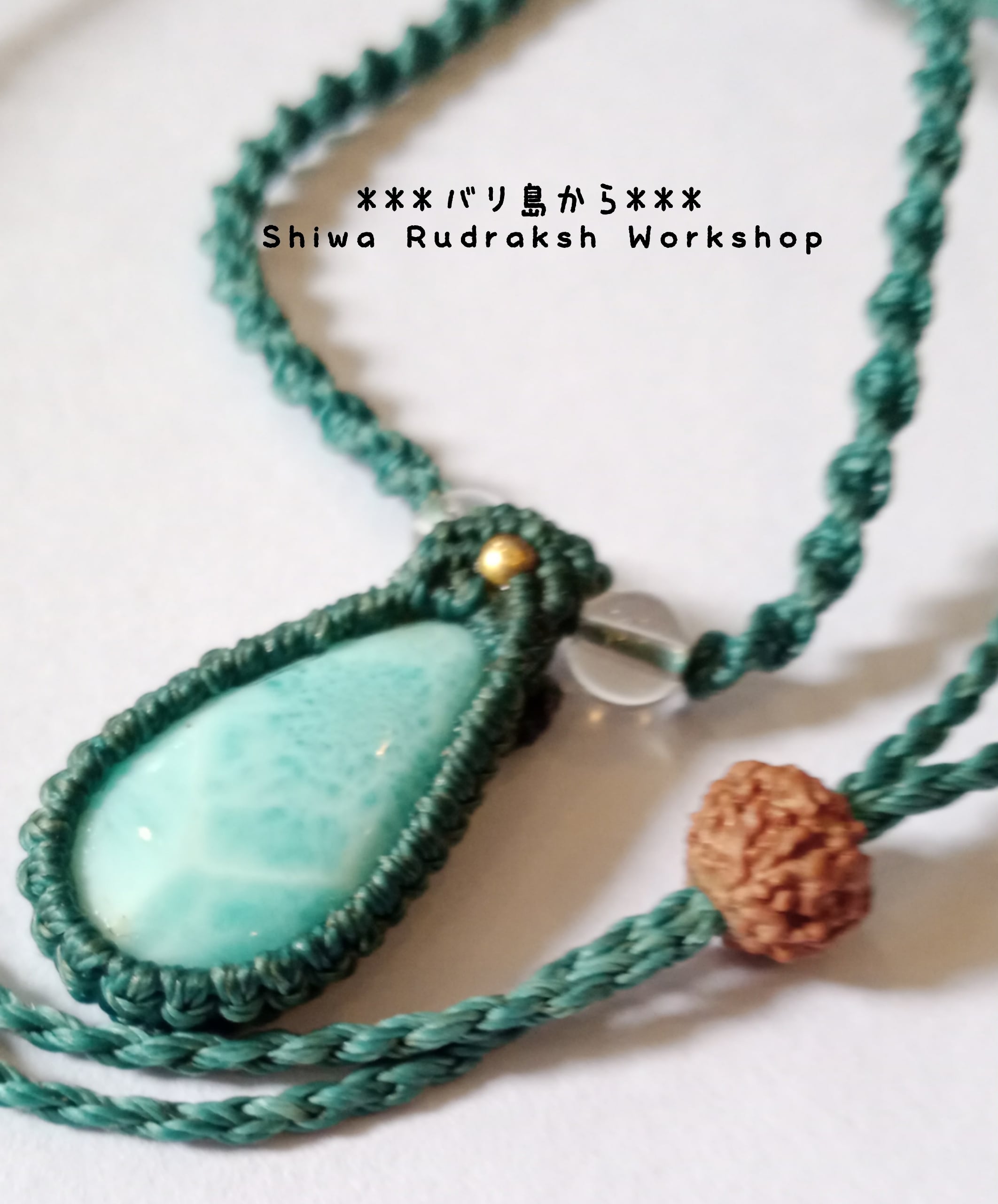 「ラリマー」と「クリスタル」のマクラメ紐ネックレスです。