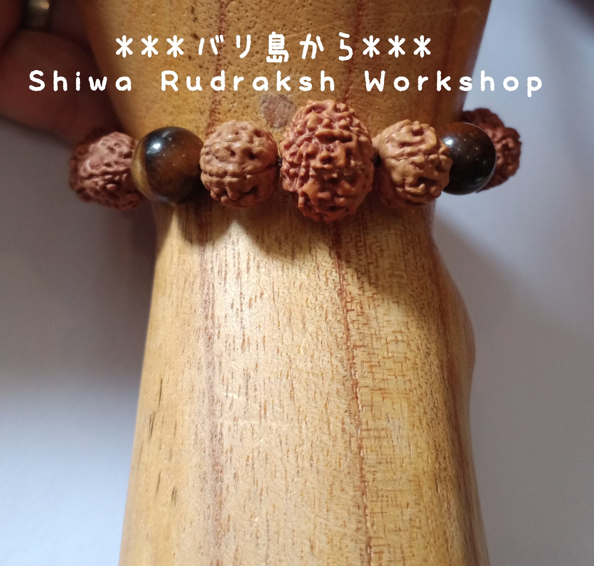 天秤座、山羊座、水瓶座さんオススメの「6&7面ルドラクシャ」を真ん中に、「タイガーアイ」で挟みました。